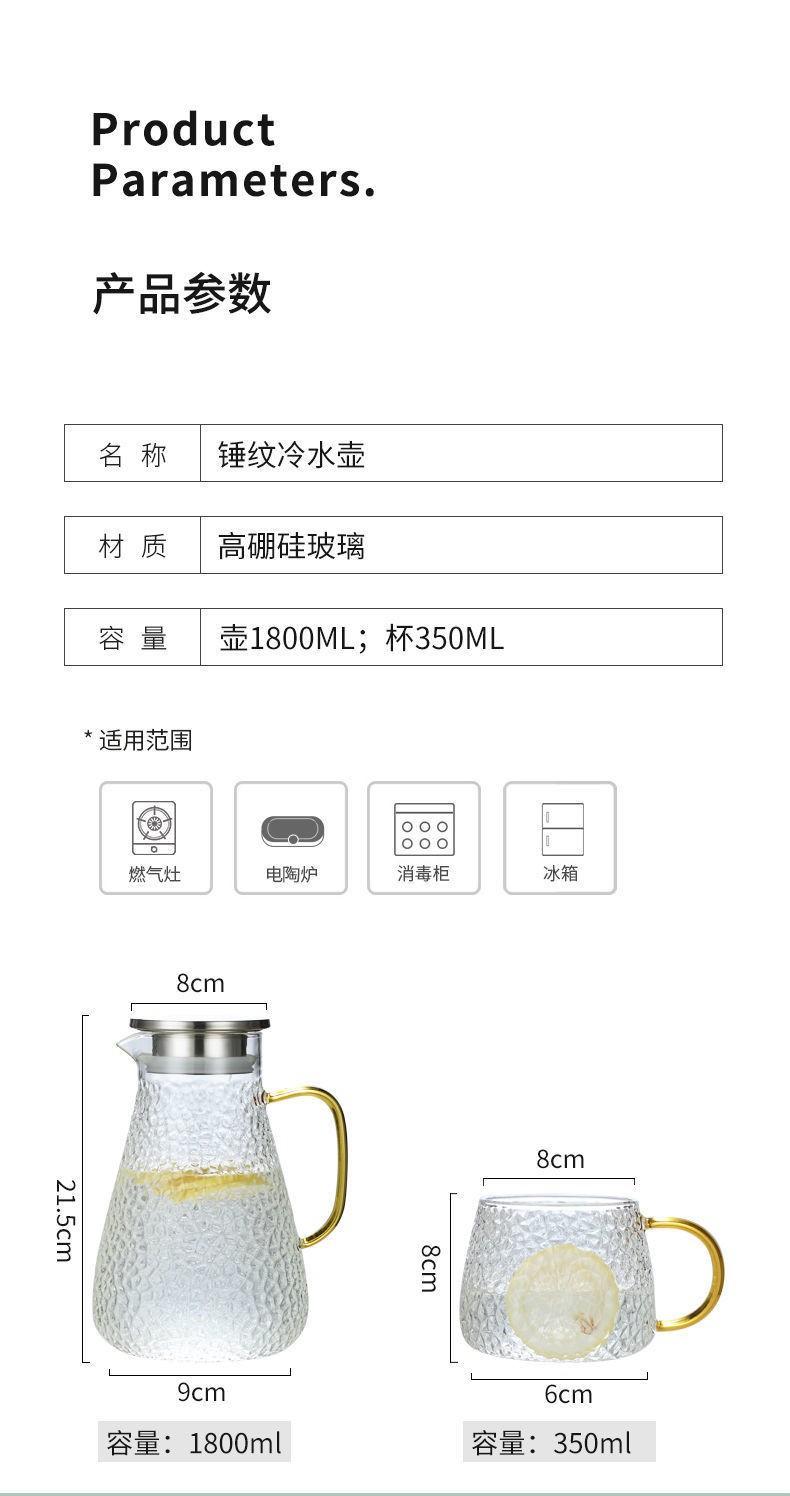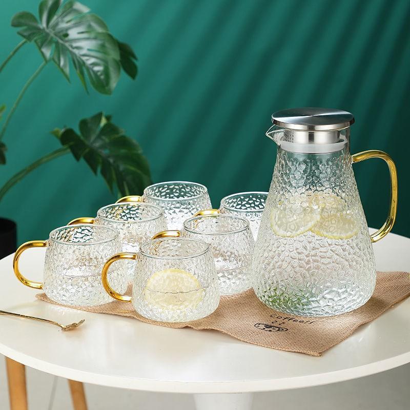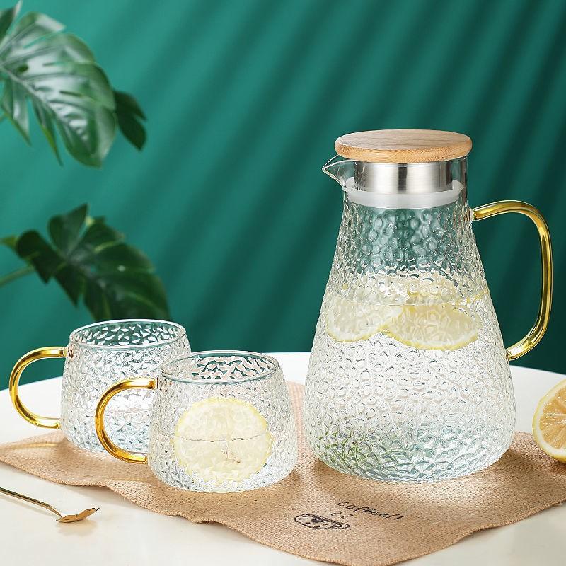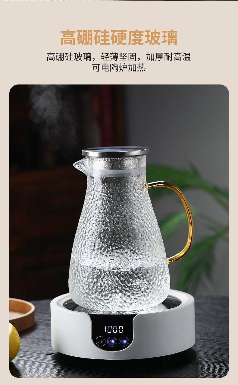 Hervidor de agua fría y caliente de vidrio de borosilicato de alta resistencia al calor con patrón de martillo, de gran capacidad, resistente a altas temperaturas, para uso doméstico.