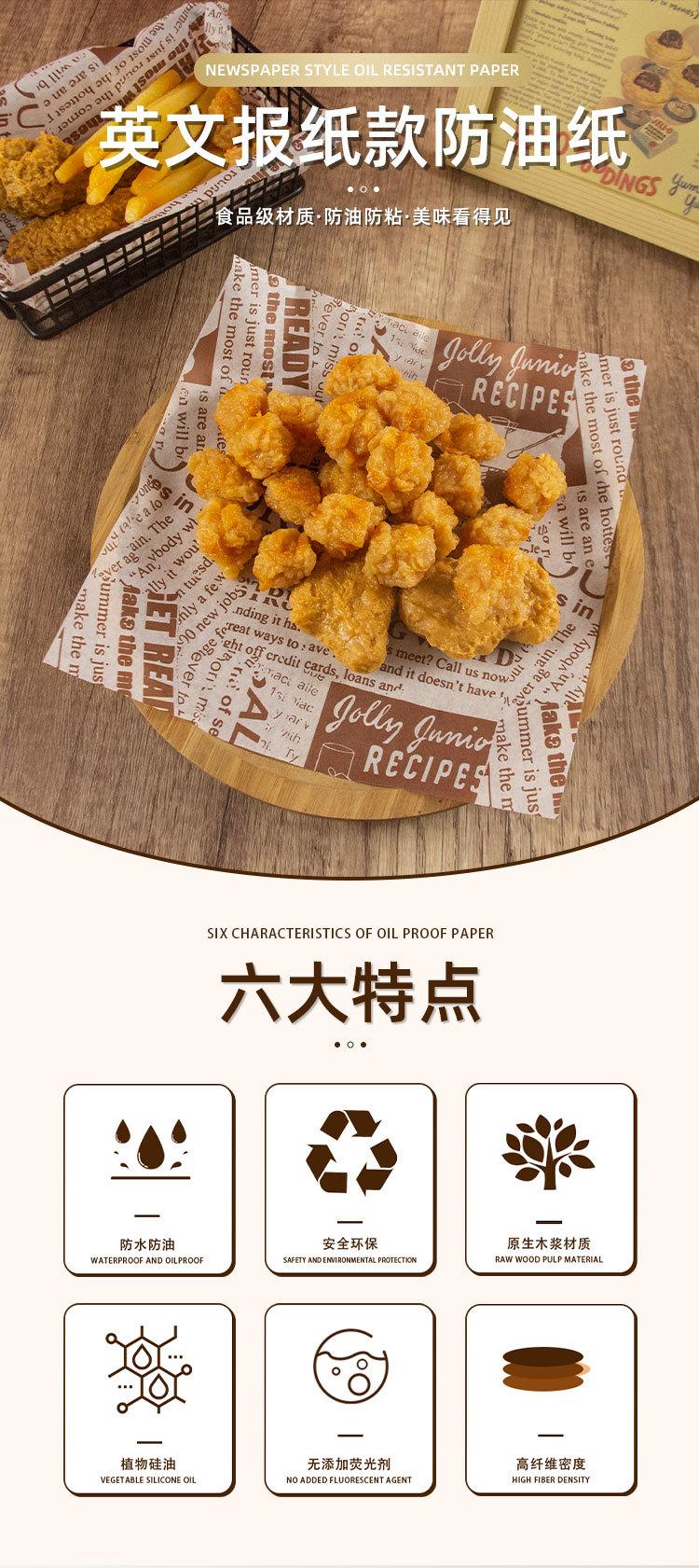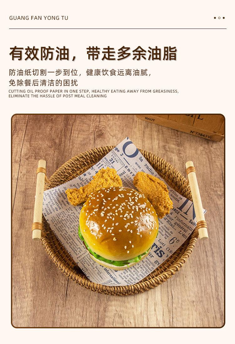 Papel a prueba de aceite, papel amortiguador, papel absorbente de aceite, papel para hamburguesas, papel para pan, papel para pasteles, bandeja para hornear alimentos, papel de aceite