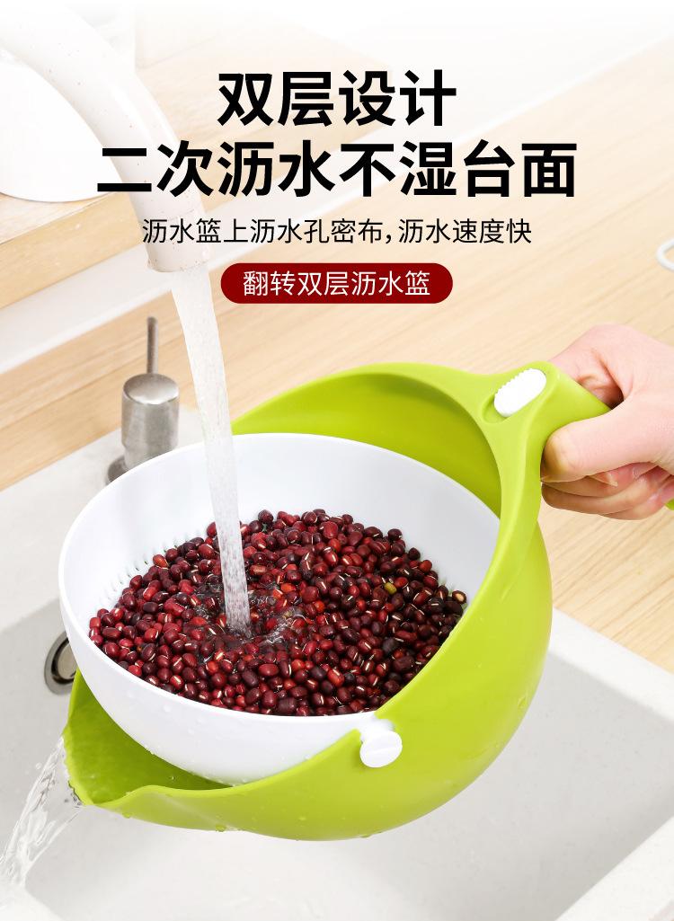 Cesta de drenaje abatible de doble capa para lavar frutas, artefacto de cocina de grado alimenticio para el hogar, nuevo lavabo para lavar verduras 2024
