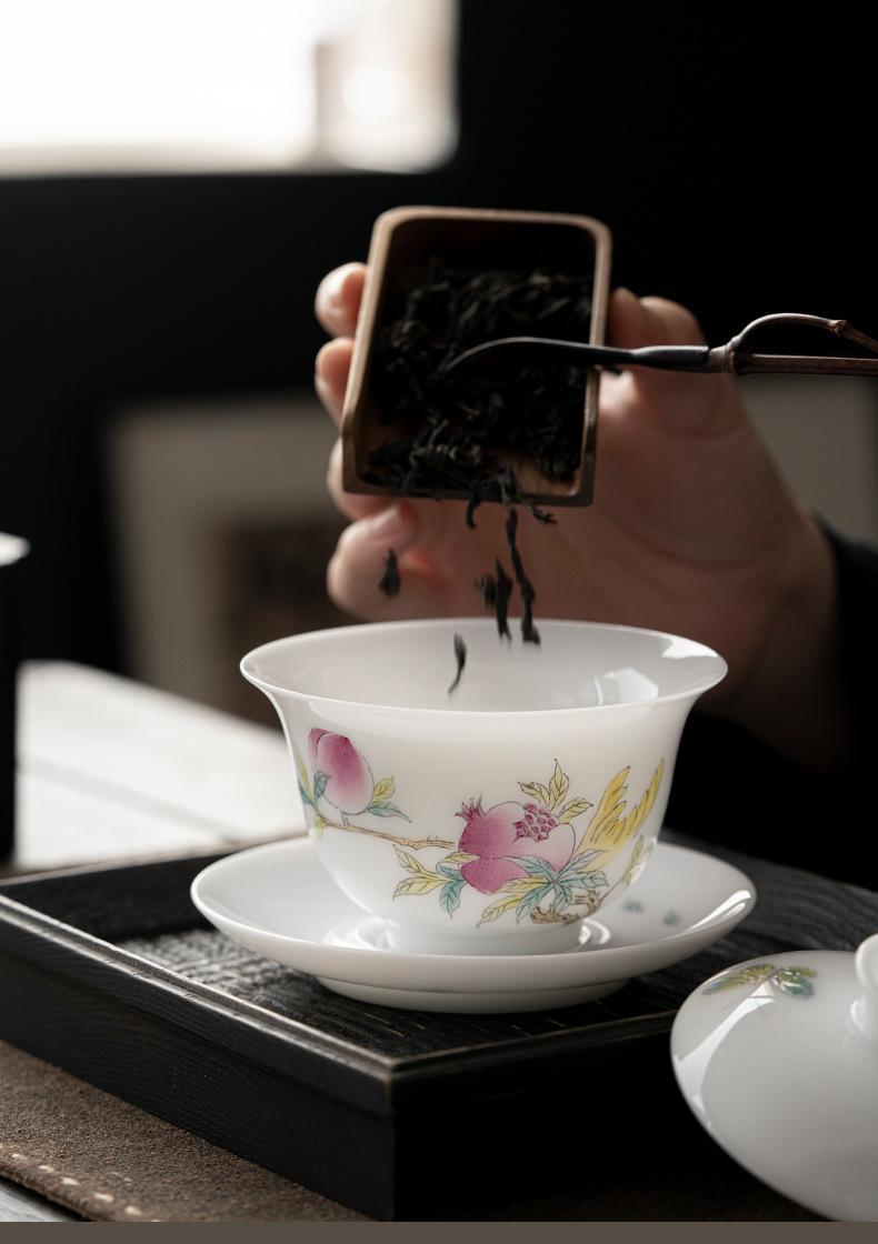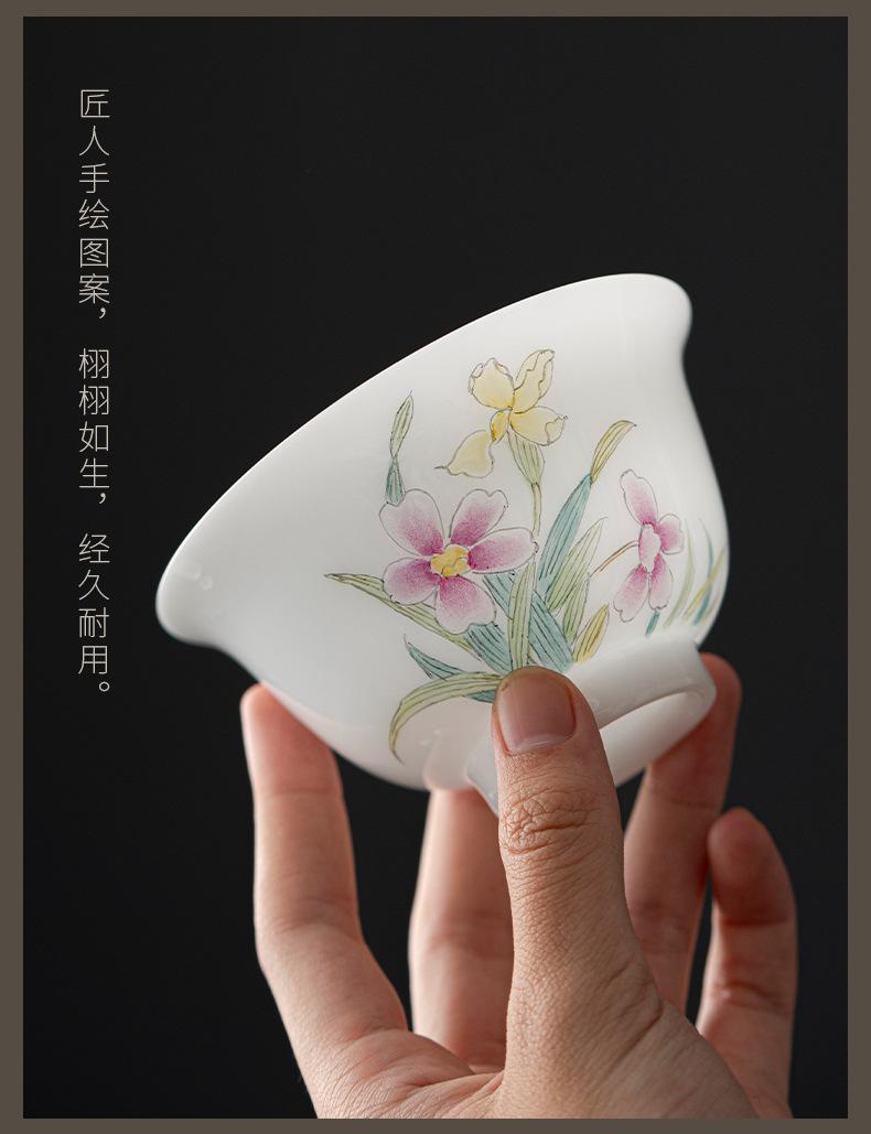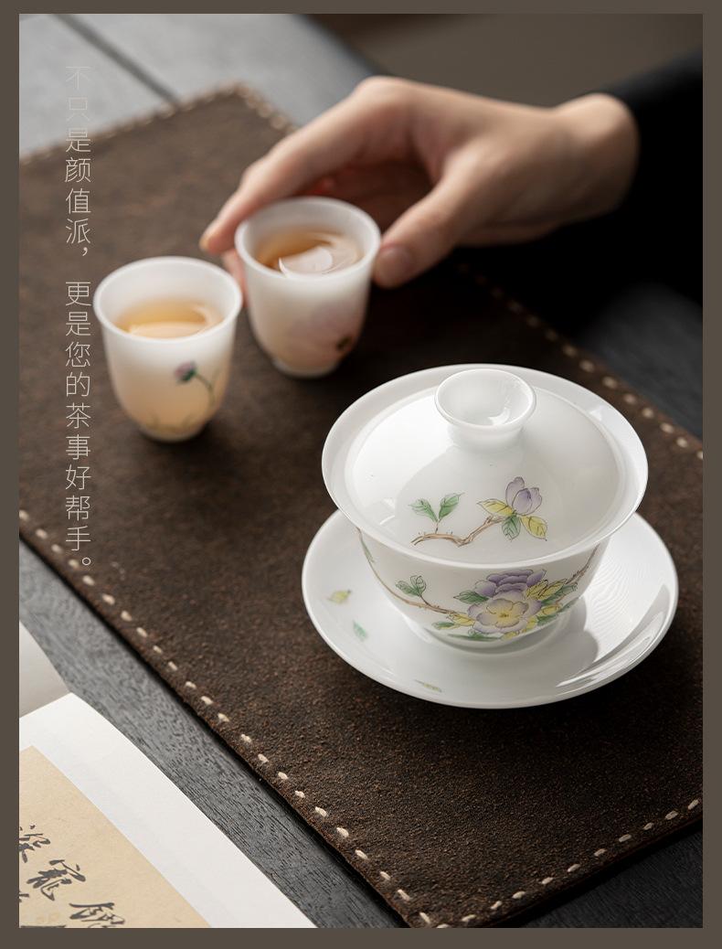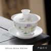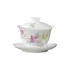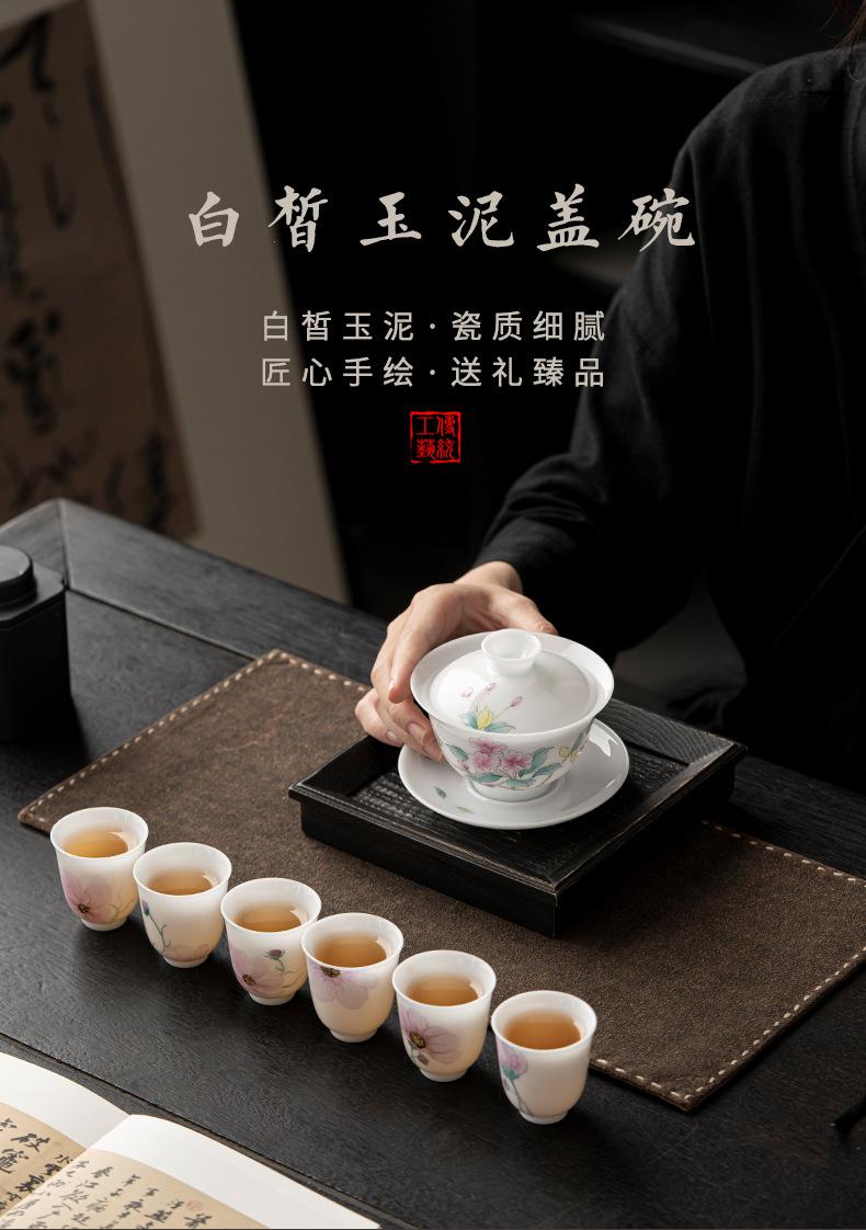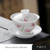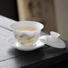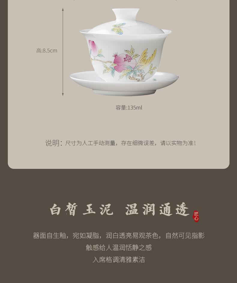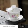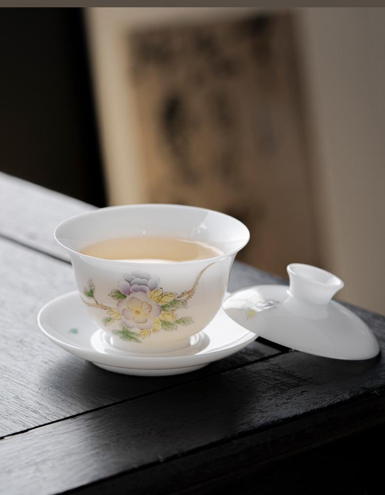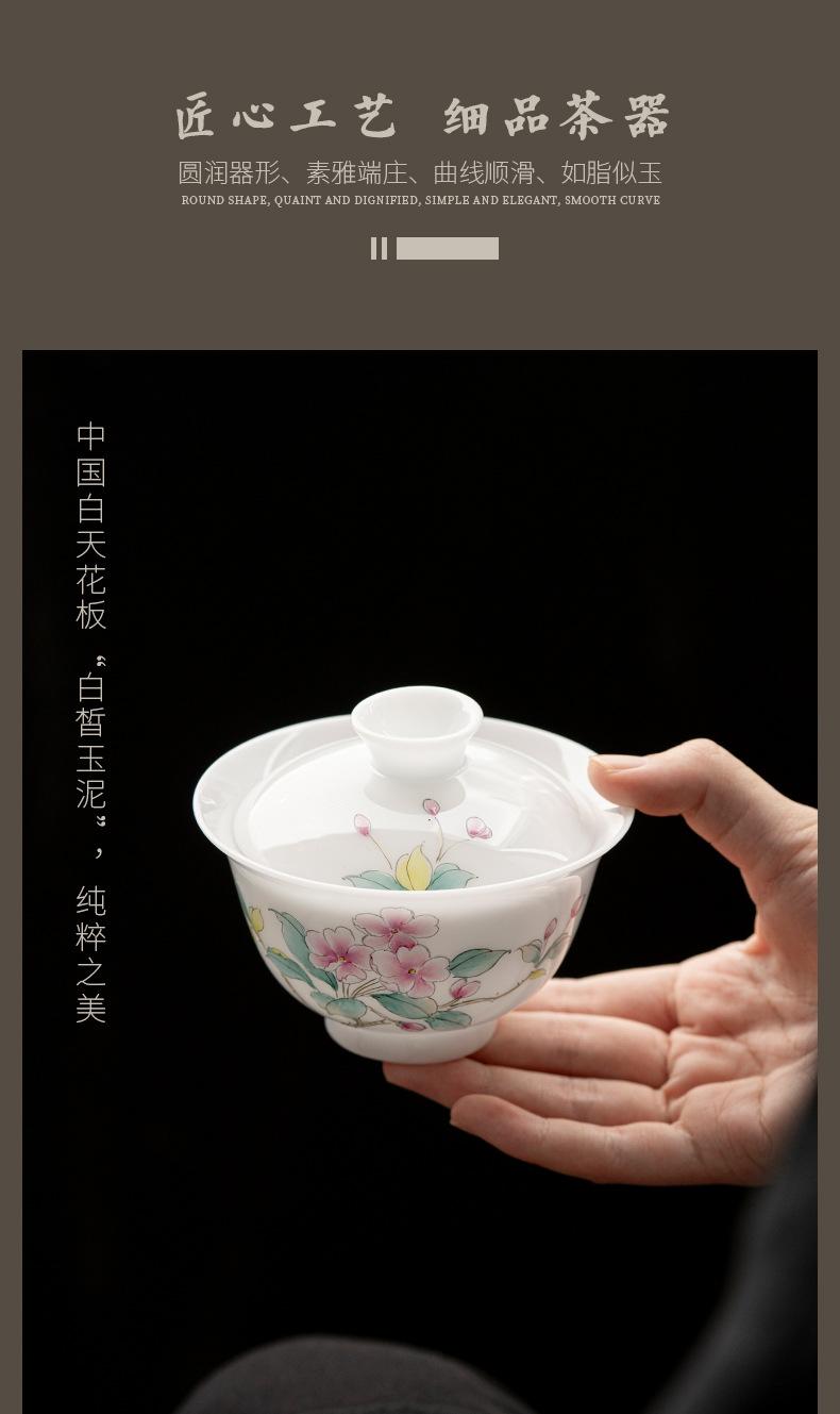 Tazón Cubierto de Tres Talentos de Barro de Jade Blanco Pintado a Mano Porcelana de Jade Semilla de Hielo con Tapa Taza de Té Tazón de Té No Caliente Jaula de Té Juego de Té Kung Fu