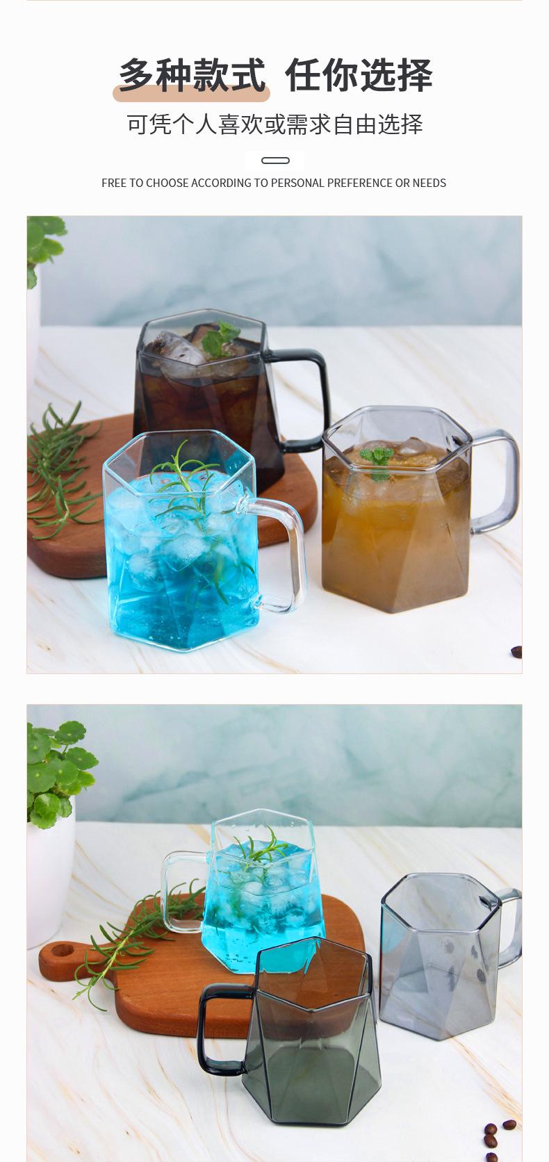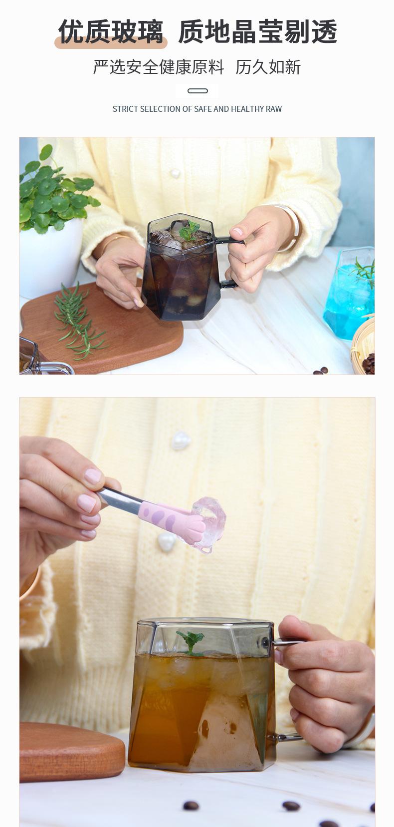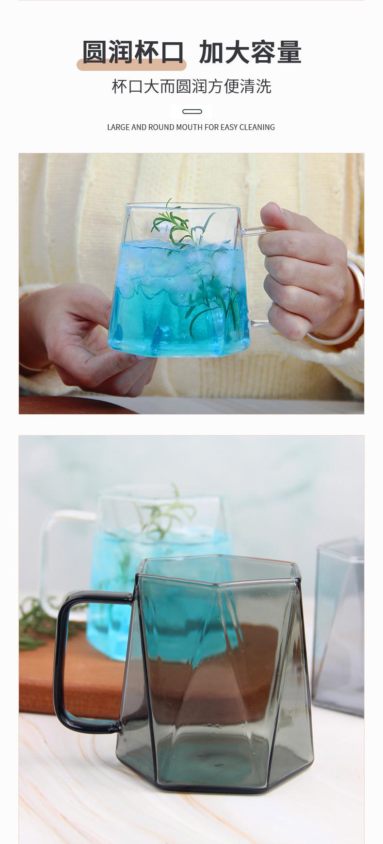 Taza de vidrio de diamante negro con tapa, cuchara y vaso de oficina de gran capacidad.