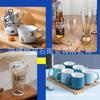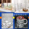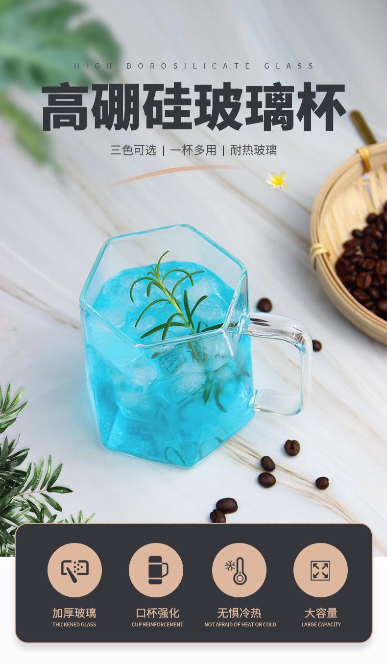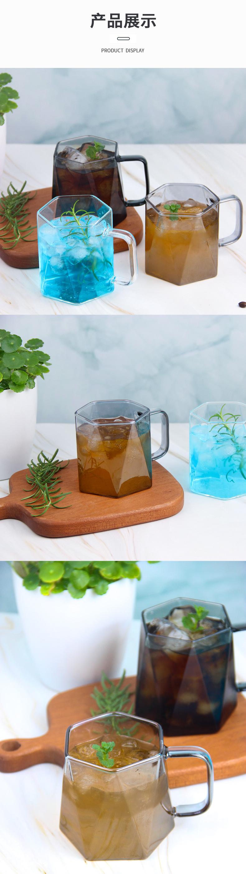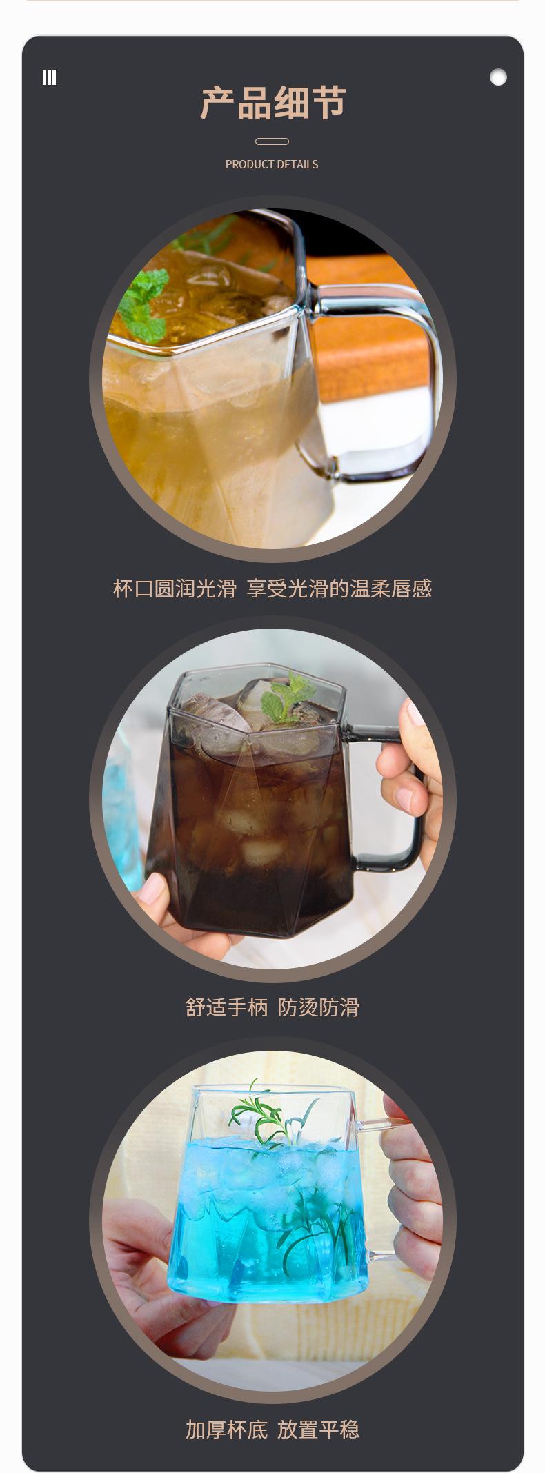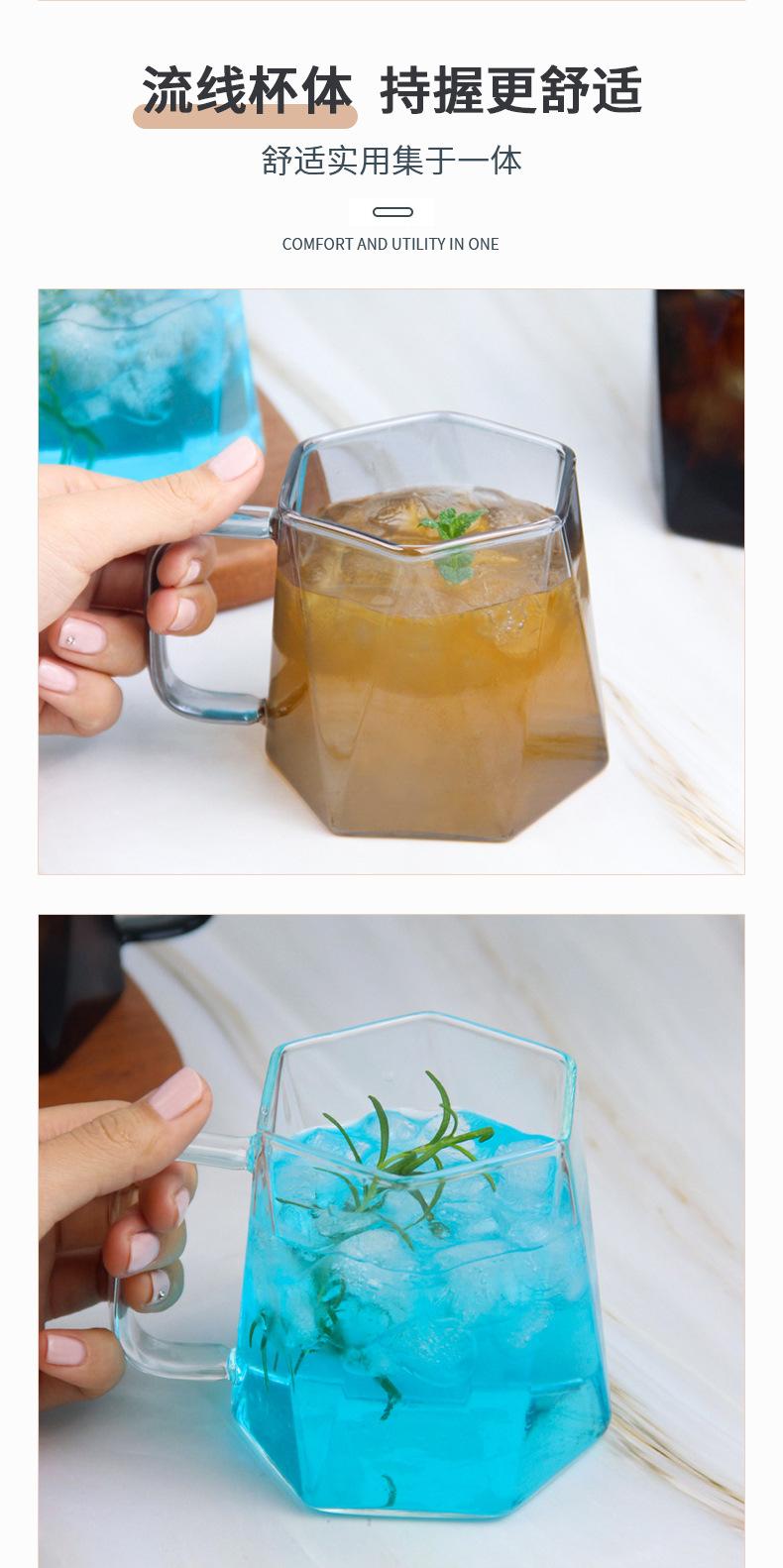 Taza de vidrio de diamante negro con tapa, cuchara y vaso de oficina de gran capacidad.