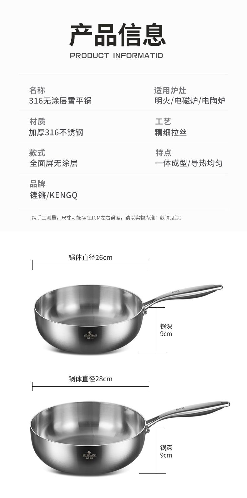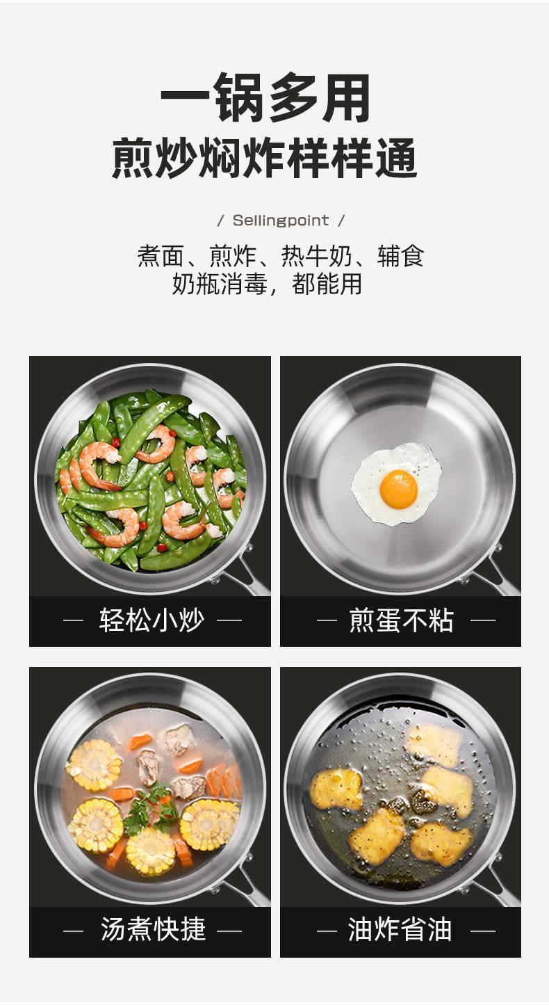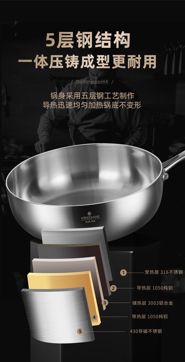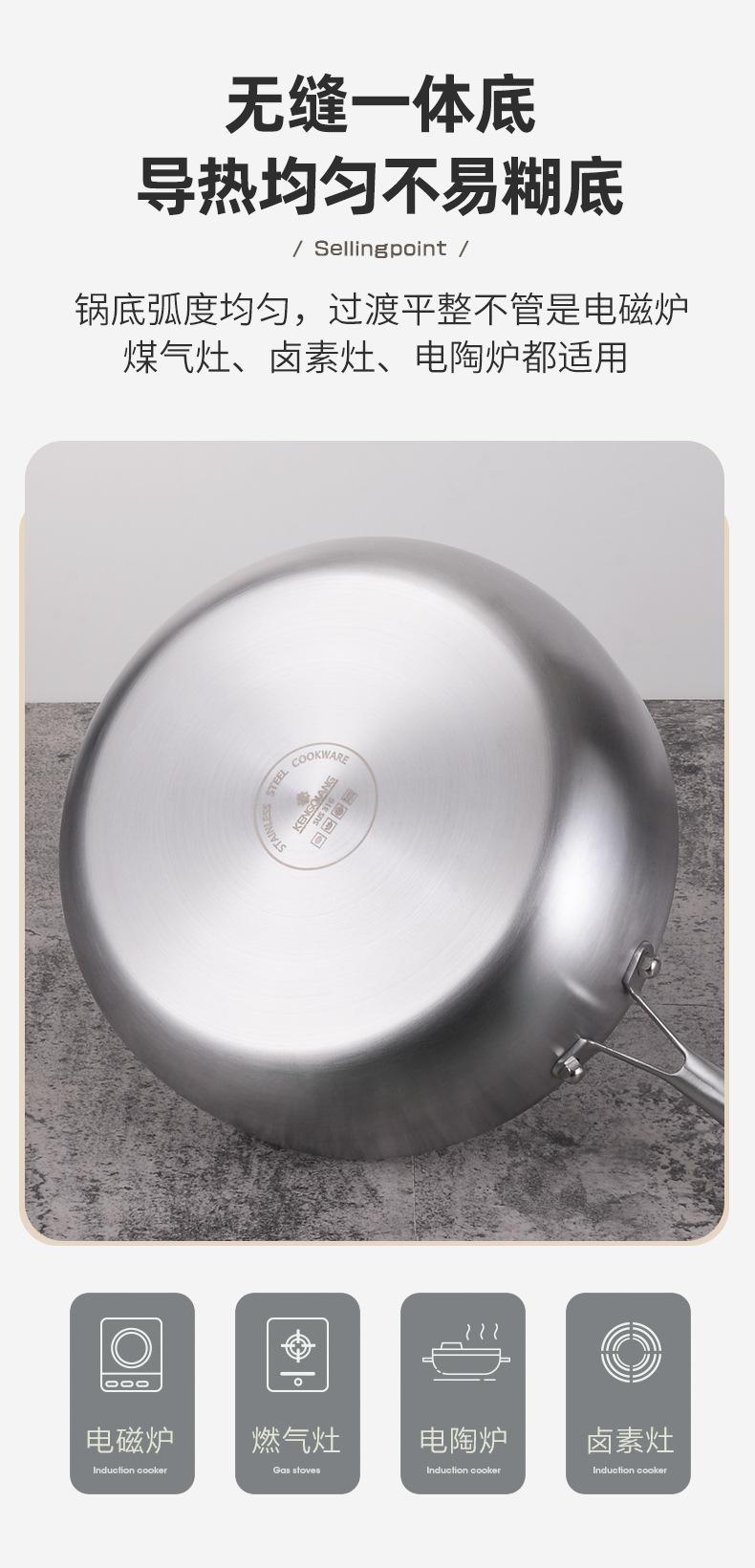 Wok de acero inoxidable 316 para cocina de inducción, sartén antiadherente, multifuncional, pequeño, sin revestimiento, para el hogar
