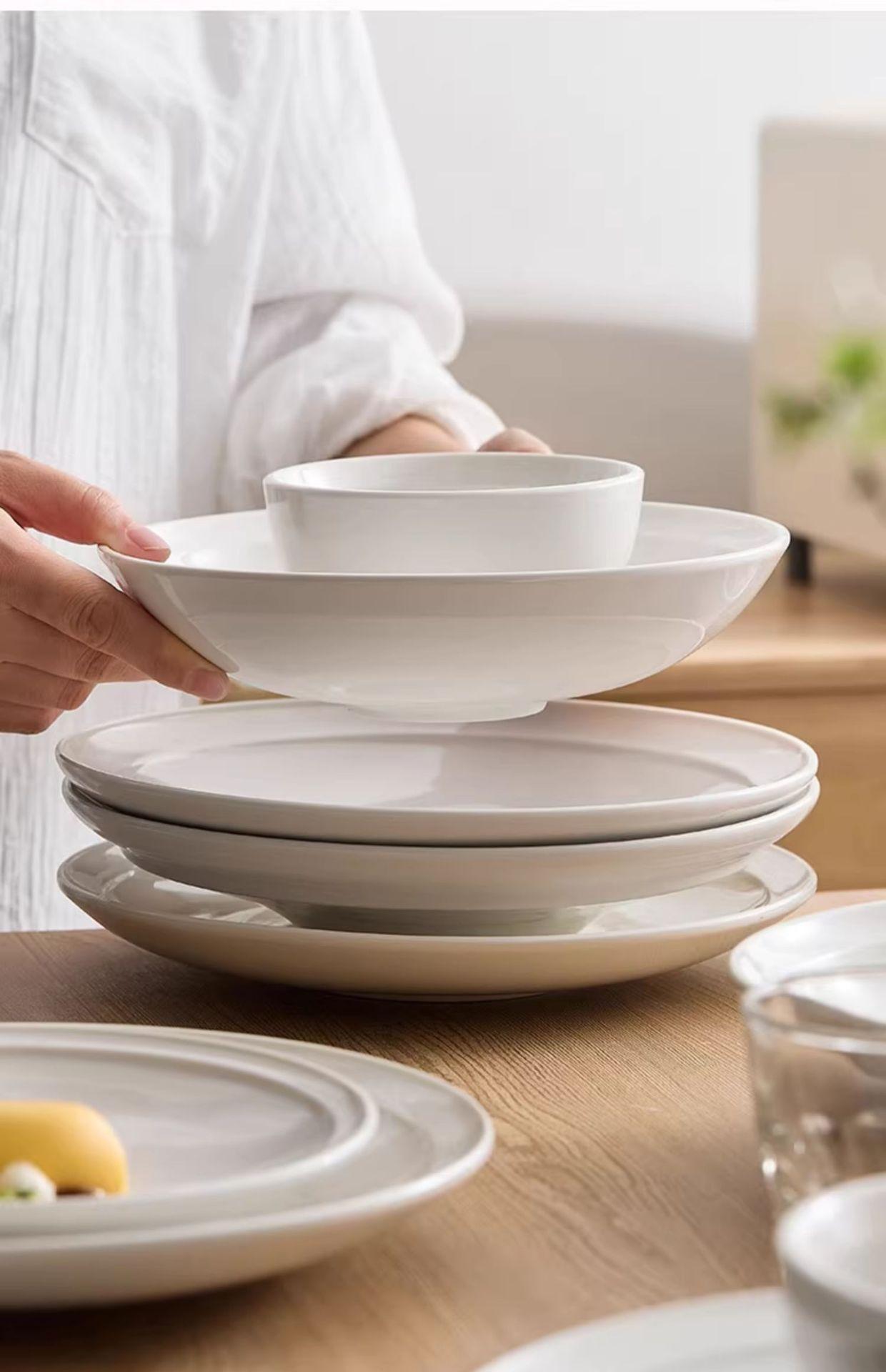 Cuenco blanco sencillo de cerámica para el hogar, vajilla de estilo japonés, cuenco combinado para sopa, plato de arroz y verduras para inauguración de la casa.