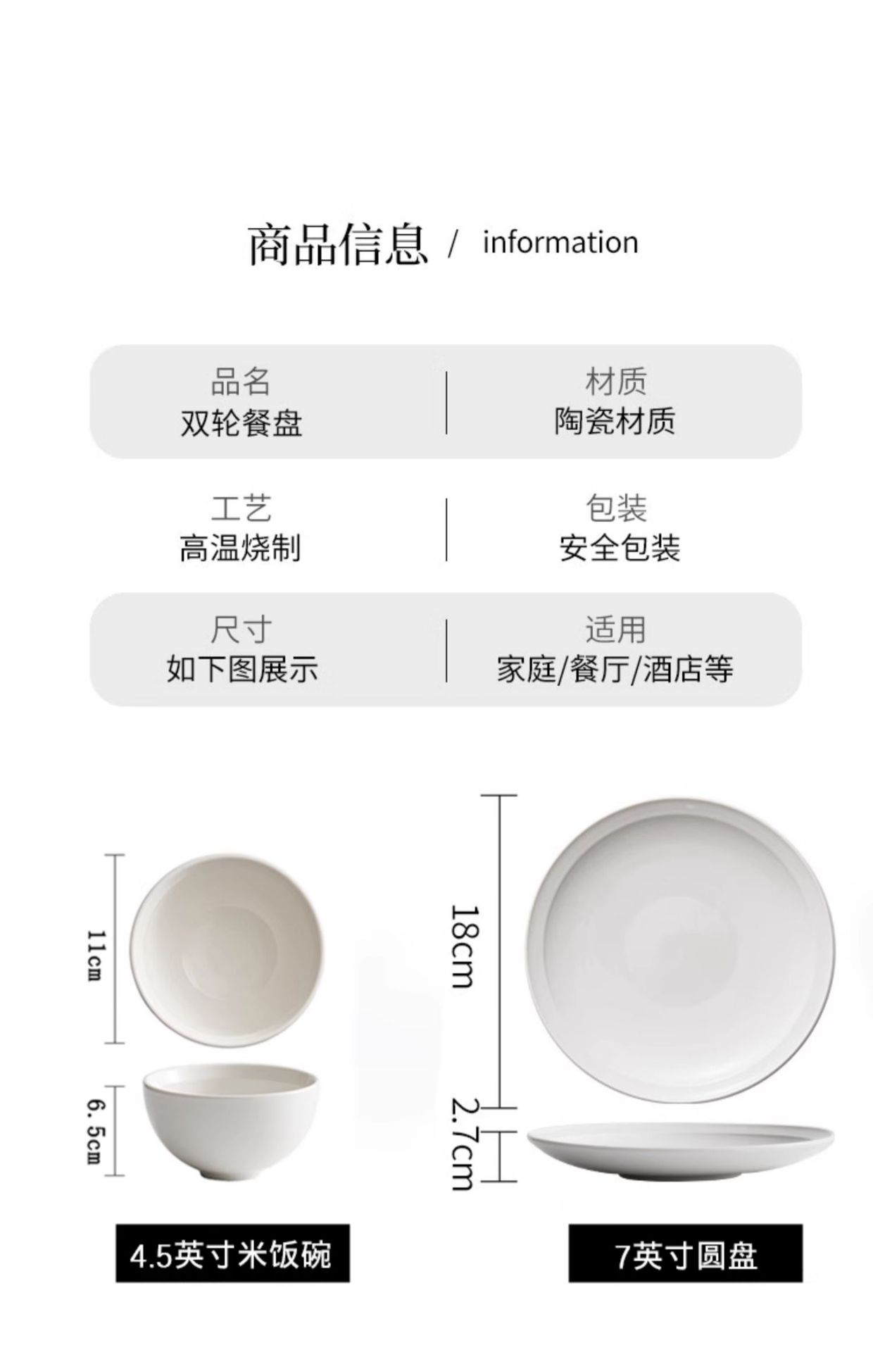 4.5inch fantasy family rice bowl glossy white, 7inch pure white double wheel disc, 9inch pure white double whe...