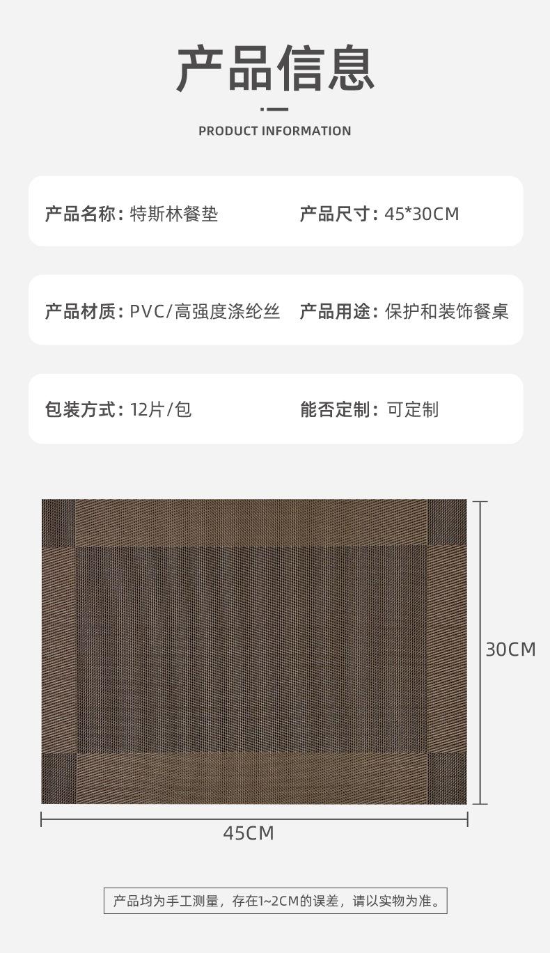 Mantel individual occidental de PVC Teslin, mantel individual grande a cuadros, mantel de mesa impermeable de estilo japonés de PVC, mantel aislante para hotel o restaurante
