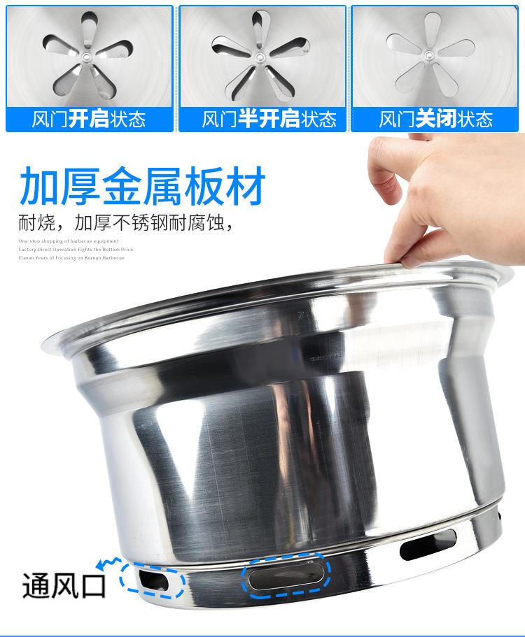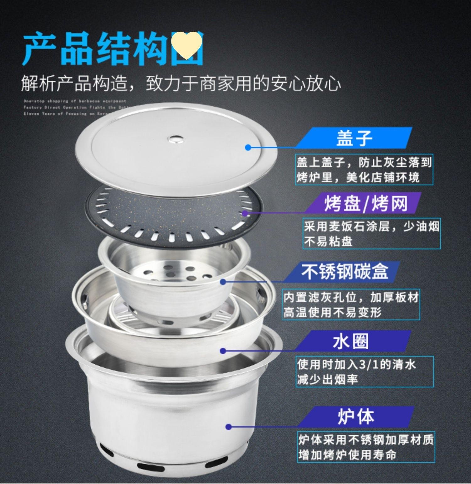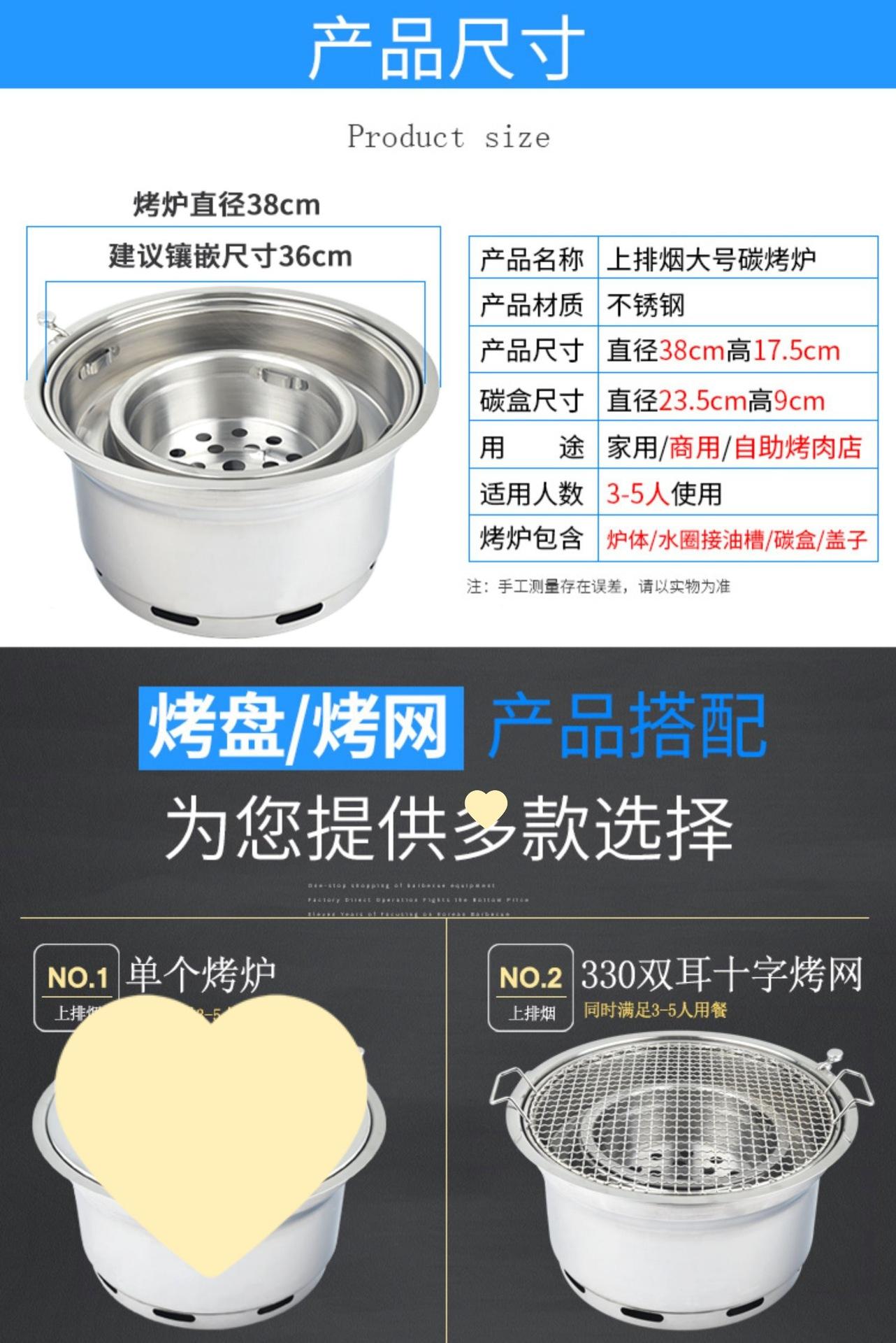 Parrilla de carbón con incrustaciones de humo superior de gran tamaño de estilo coreano, parrilla de acero inoxidable, parrilla de carbón, parrilla de carbón, parrilla de carbón, tienda de barbacoa, parrilla de carbón