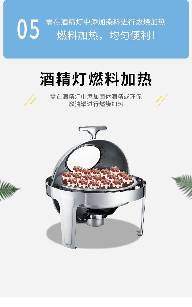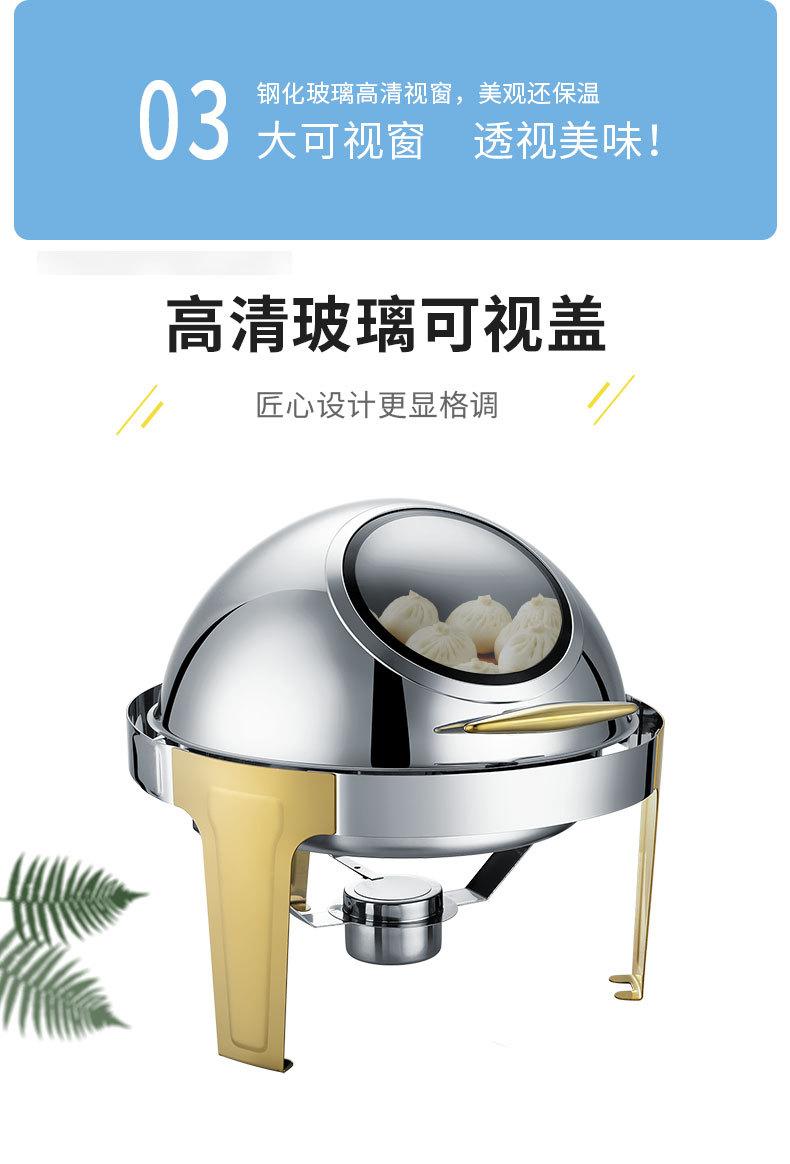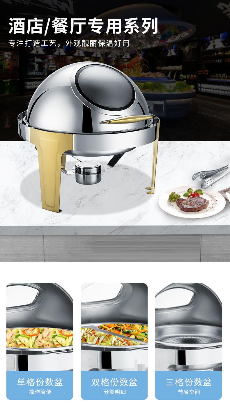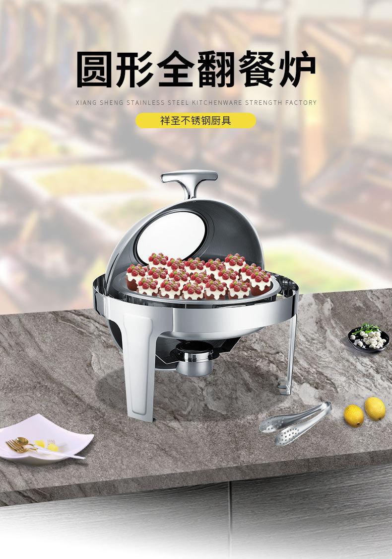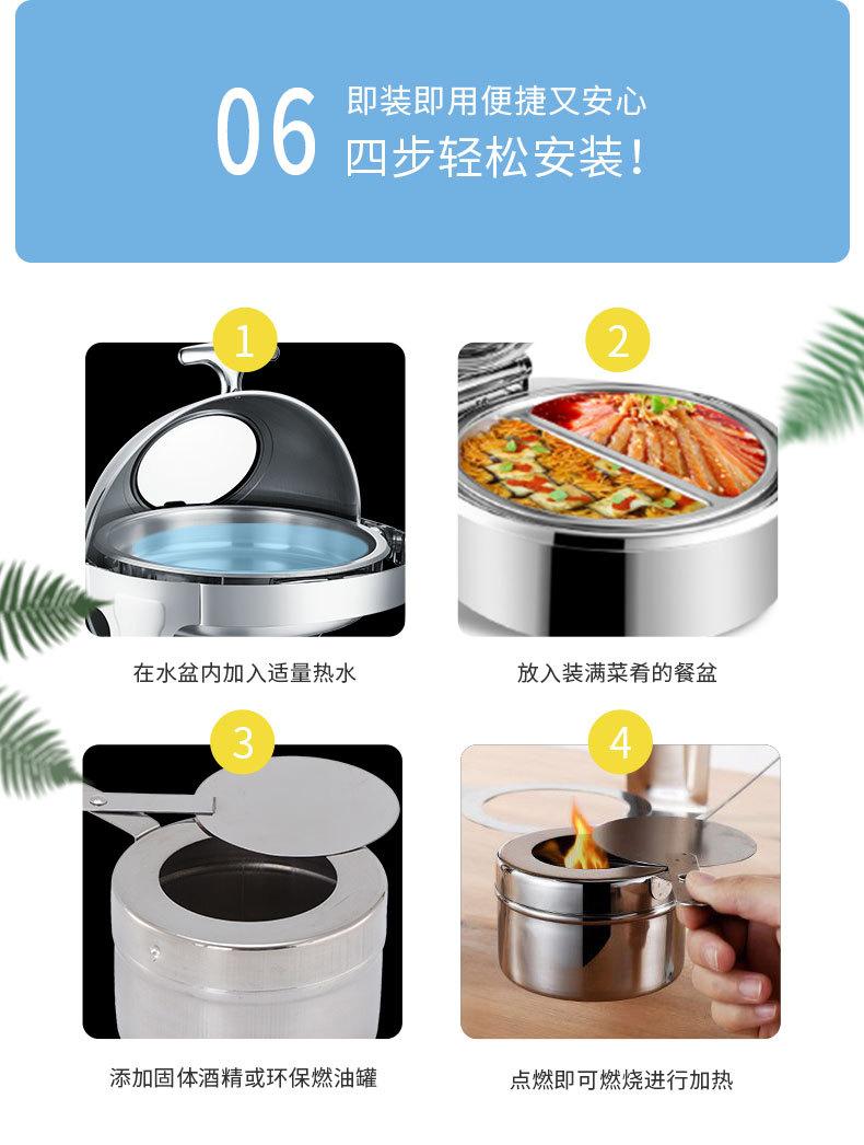 Estufa de comedor redonda de acero inoxidable con calefacción abatible completa, estufa de buffet visual, estufa de buffet de hotel, aislamiento de buffet