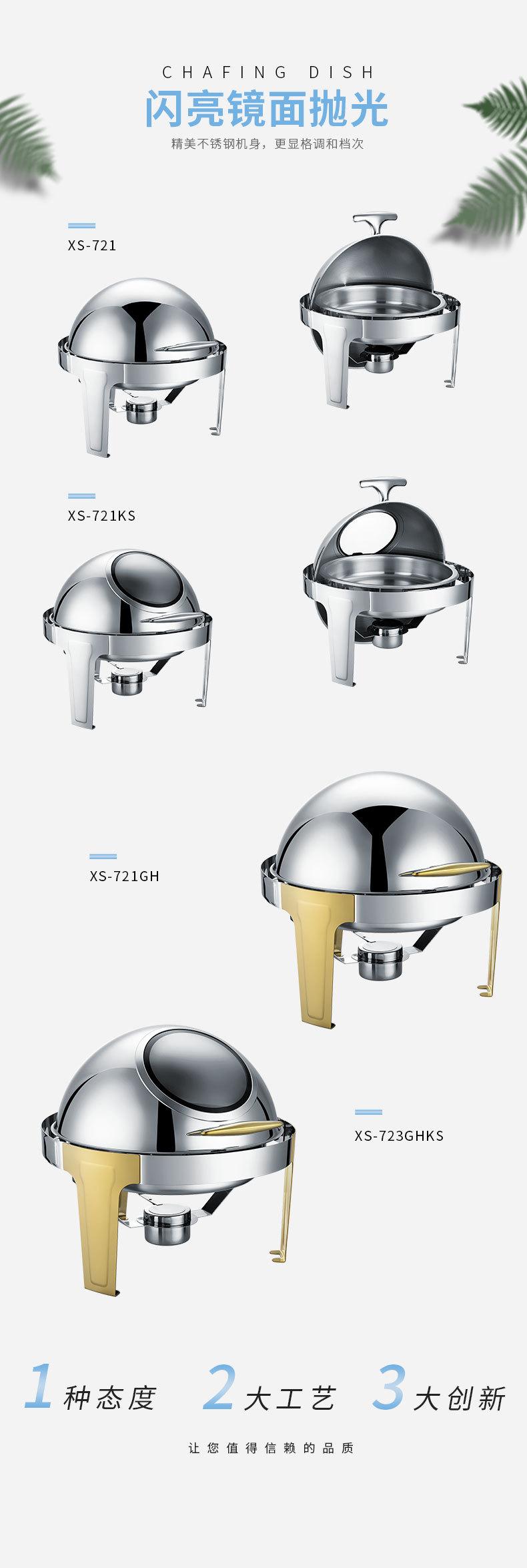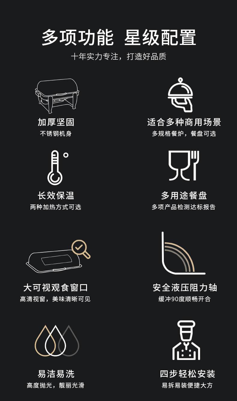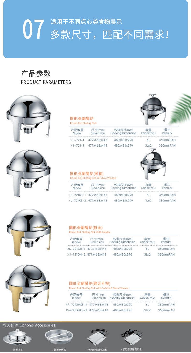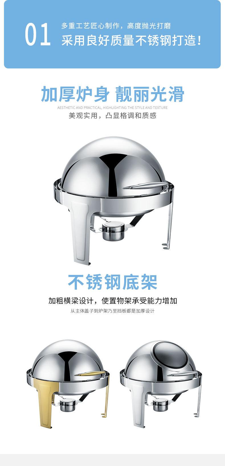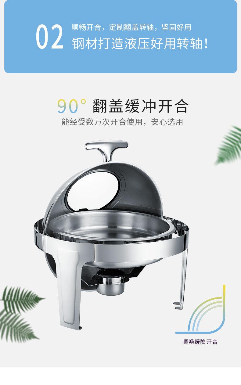 Estufa de comedor redonda de acero inoxidable con calefacción abatible completa, estufa de buffet visual, estufa de buffet de hotel, aislamiento de buffet