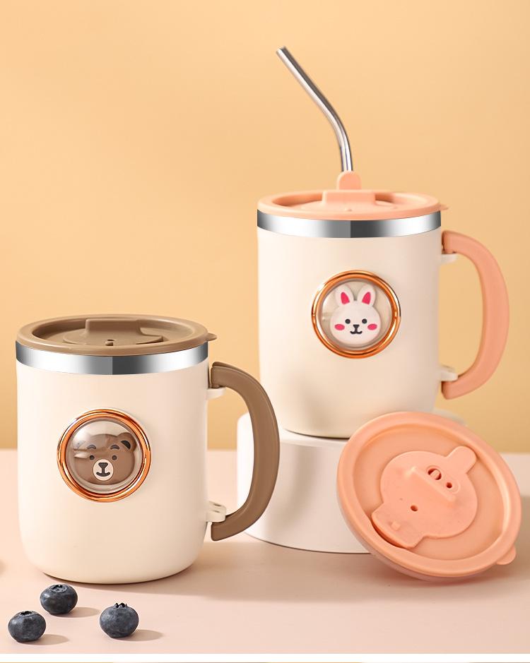 Taza de cápsula espacial de acero inoxidable 316 con dibujos animados creativos para niños, taza de agua con tapa para el hogar y la oficina.