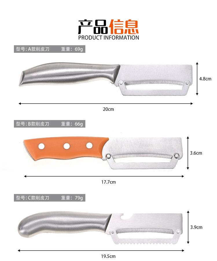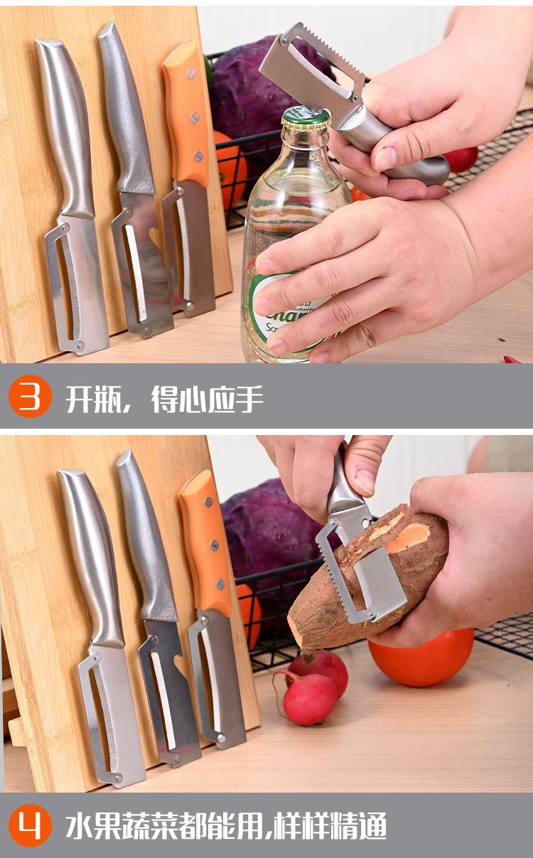 Pelador multifuncional de acero inoxidable para cocina doméstica, cepillo de melón, cuchillo de caña, raspador de frutas y verduras.