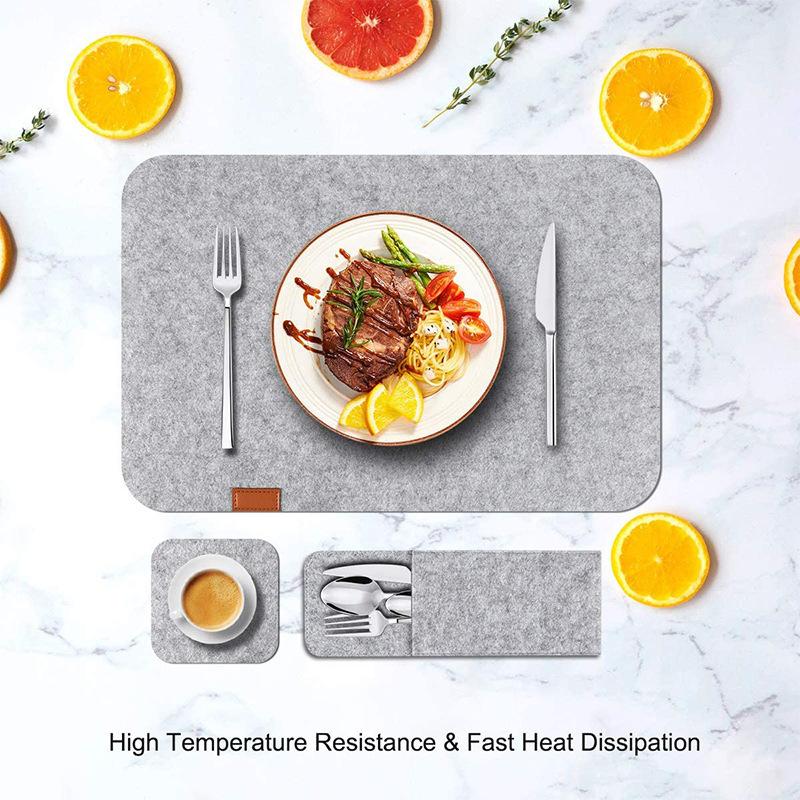 Mantel Individual de Fieltro Occidental, Tapete para Taza de Té, Bolsa para Cuchillo y Tenedor, Juego de 3 Piezas, Tapete, Posavasos Aislante de Calor con Logotipo, Mantel Lavable