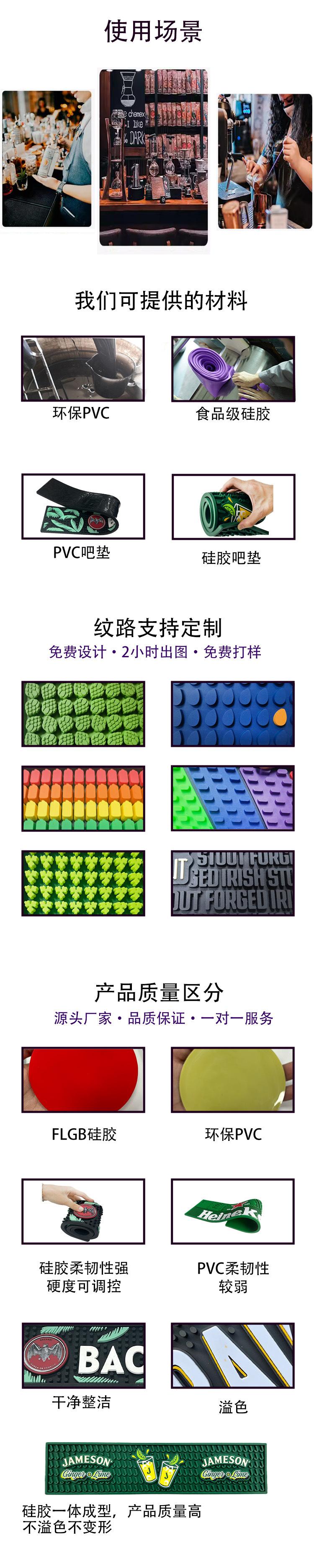 Tapete de Barra de Silicona de Diseño Profesional, Tapete de Drenaje de Barra de Grado Alimenticio, Logotipo Pegado Multicolor, Tapete Antideslizante Resistente a Altas Temperaturas