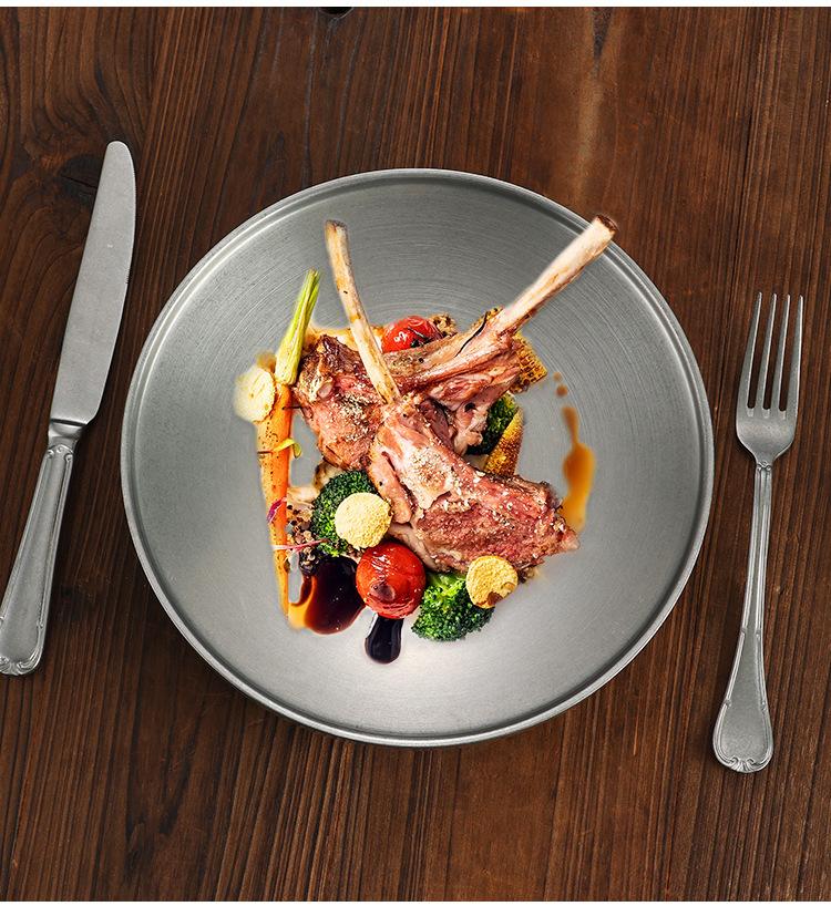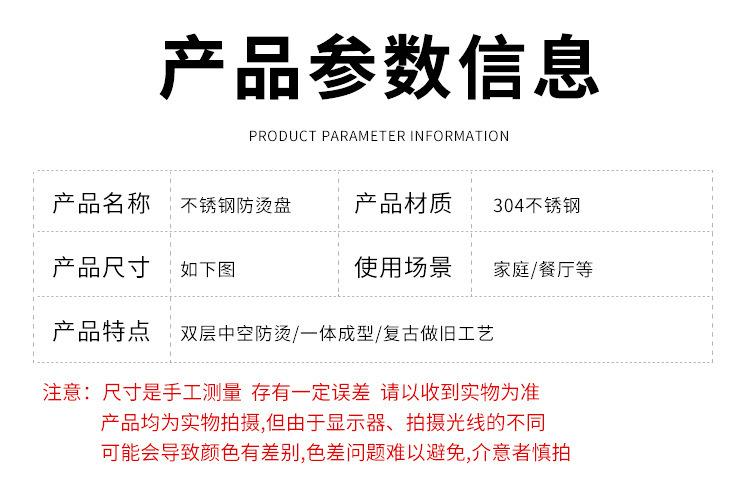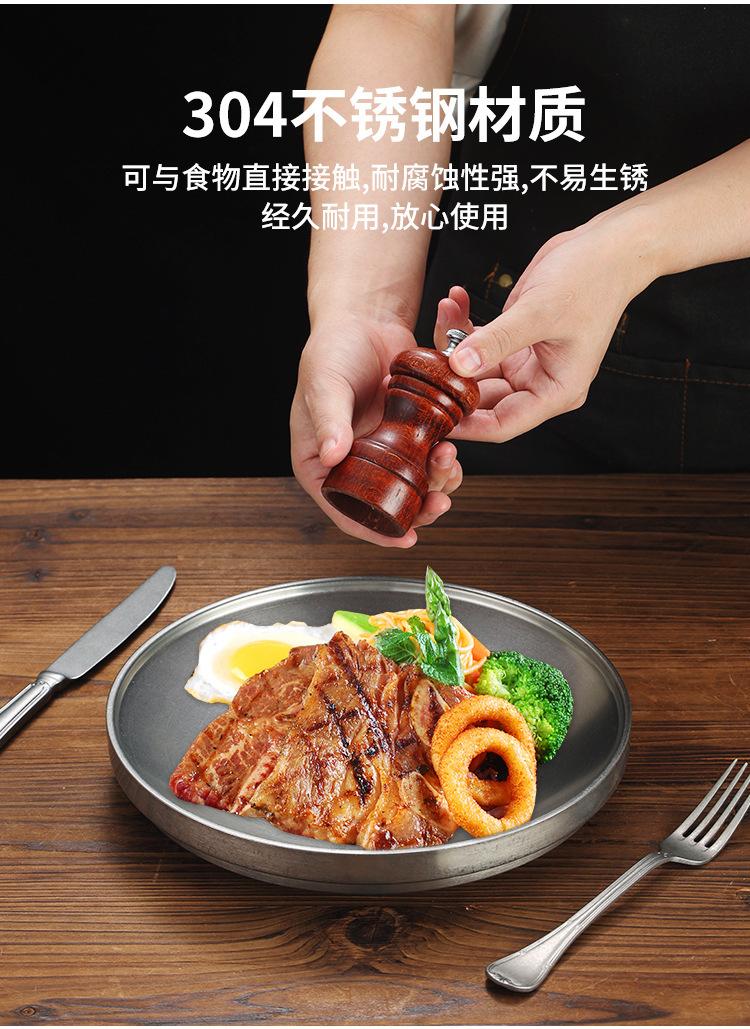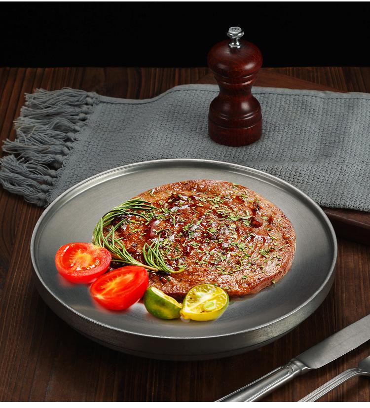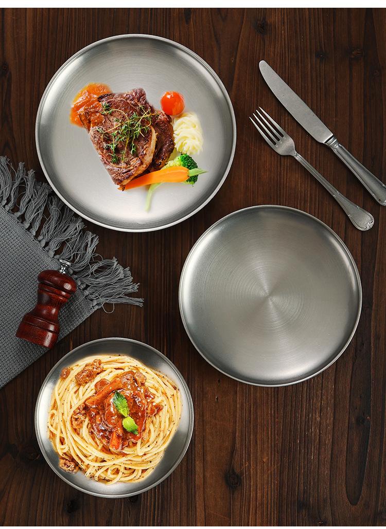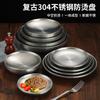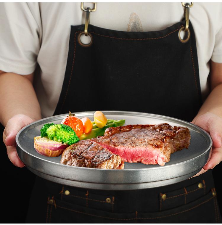 Plato vintage de acero inoxidable 304 de doble capa antiescaldamiento, plato antiguo, plato de fruta, plato plano, vajilla de barbacoa de estilo coreano.