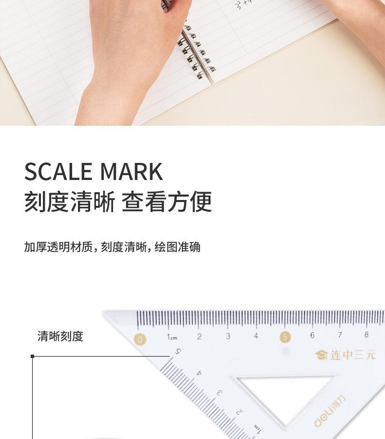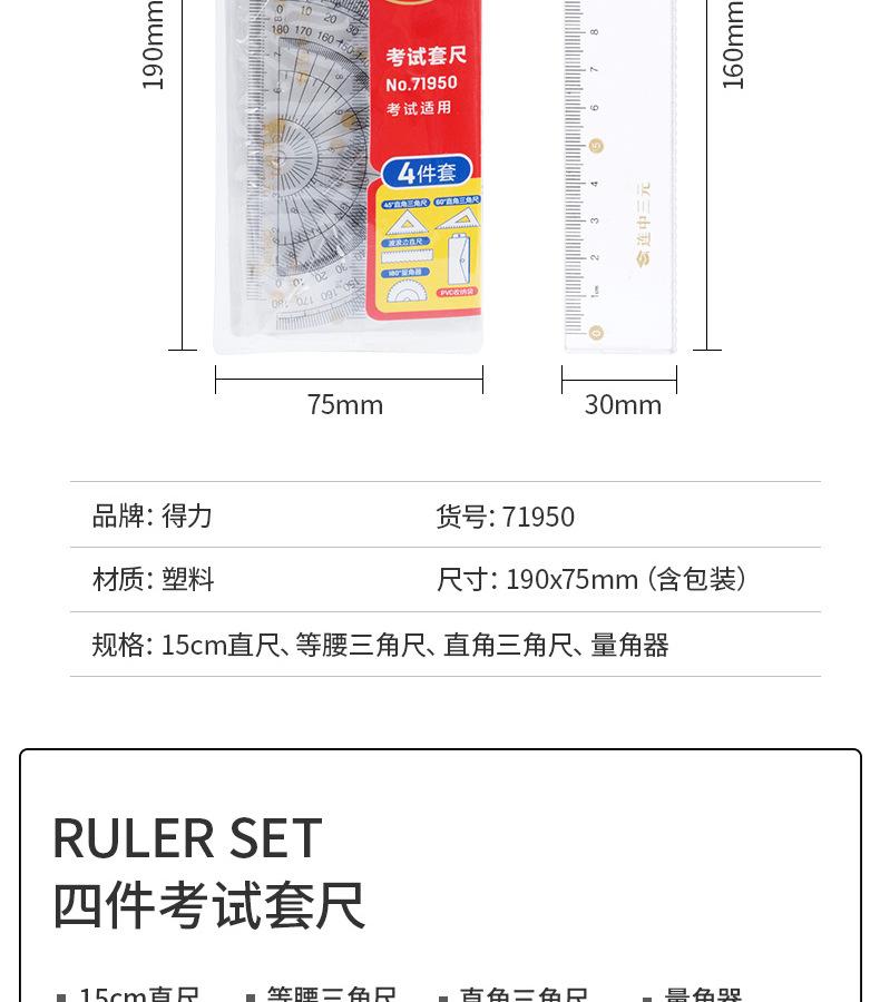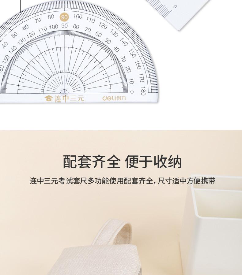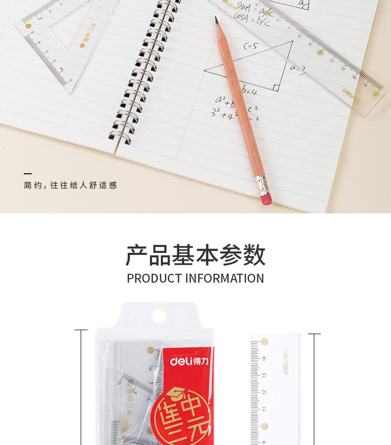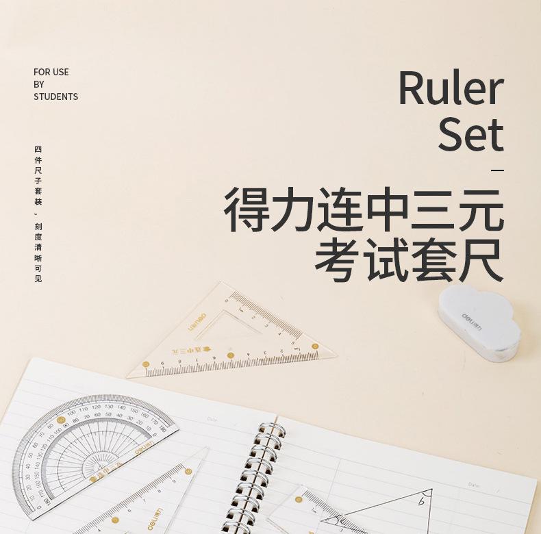 Deli 71950 juego de reglas para exámenes de estudiantes, juego de reglas, regla triangular, transportador, juego de dibujo de cuatro piezas