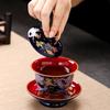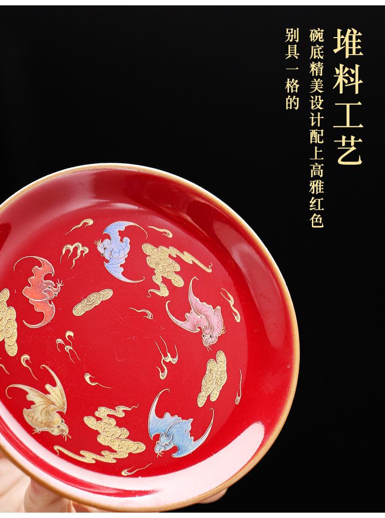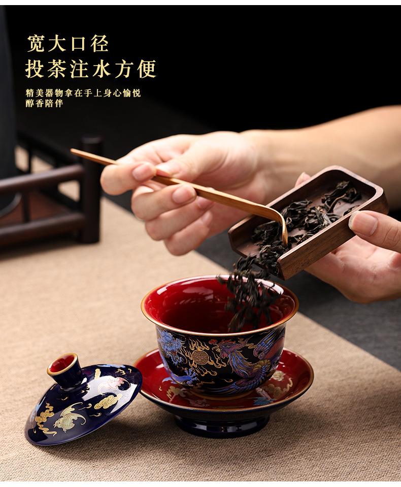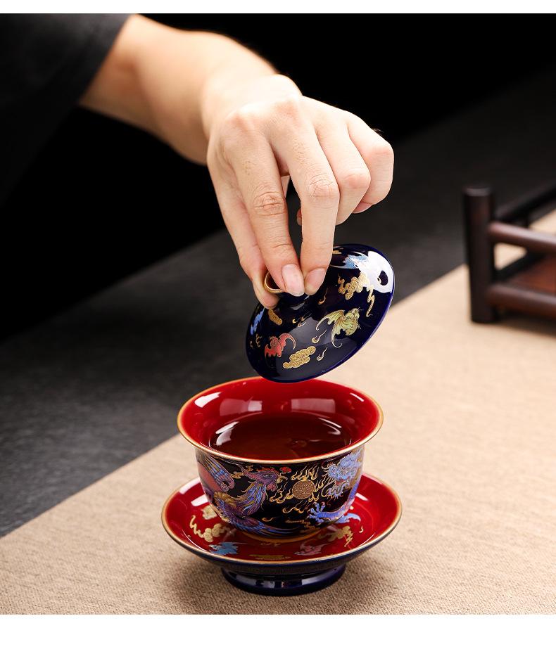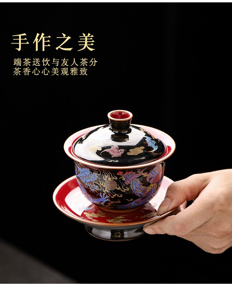 Color esmalte tres Cai cubierta Tazón tazón de té de cerámica tazón de cubierta de cerámica grande juego de té kung fu patrón de dragón y fénix rojo tazón de cubierta grande té