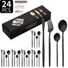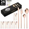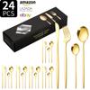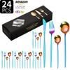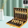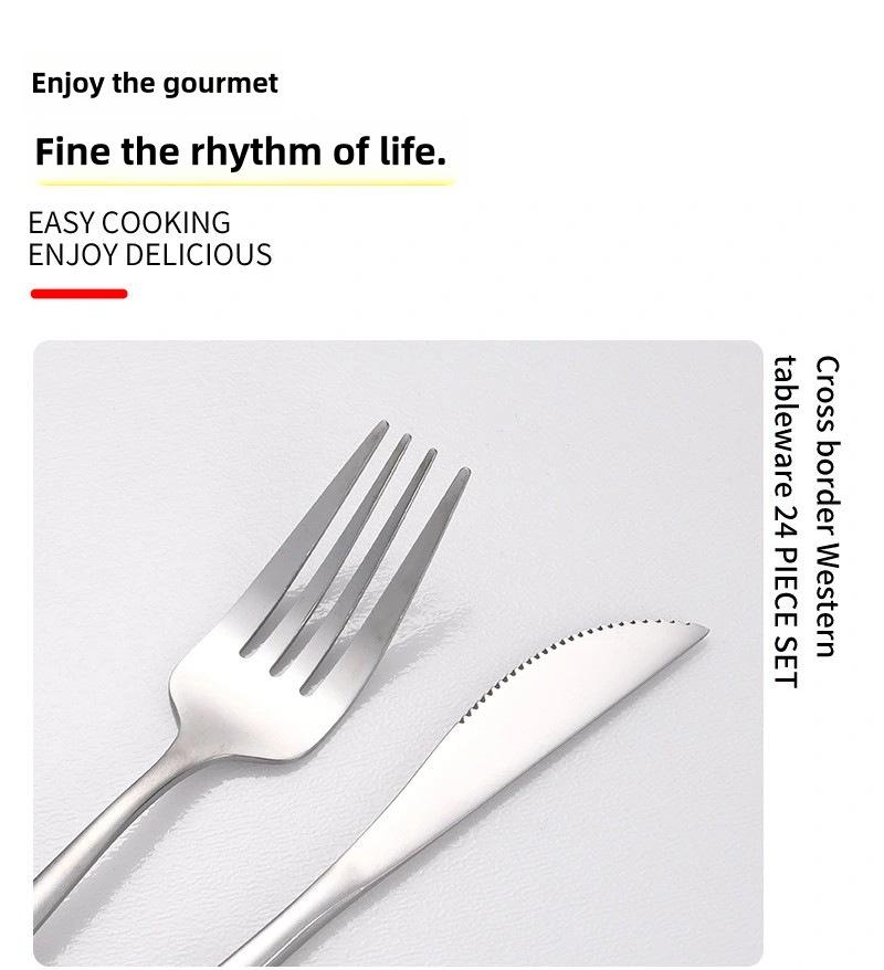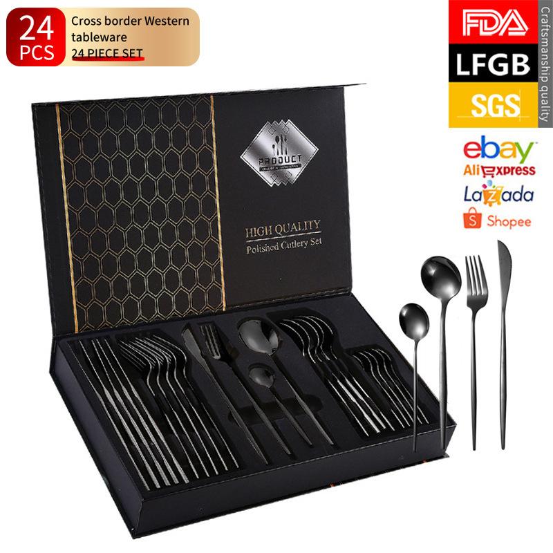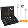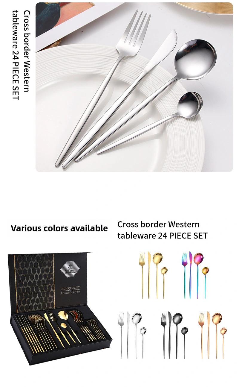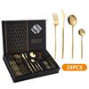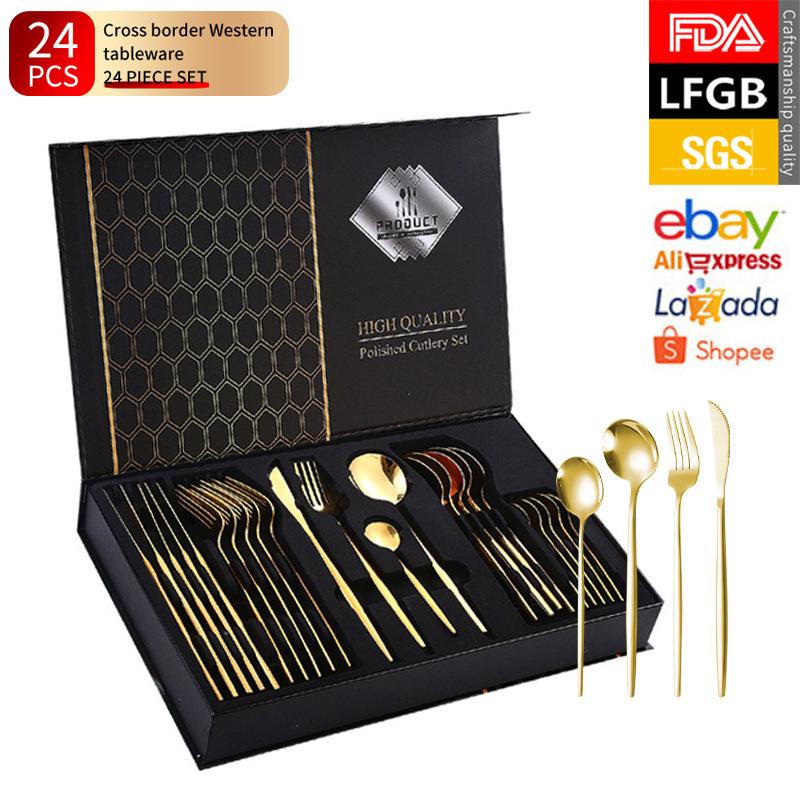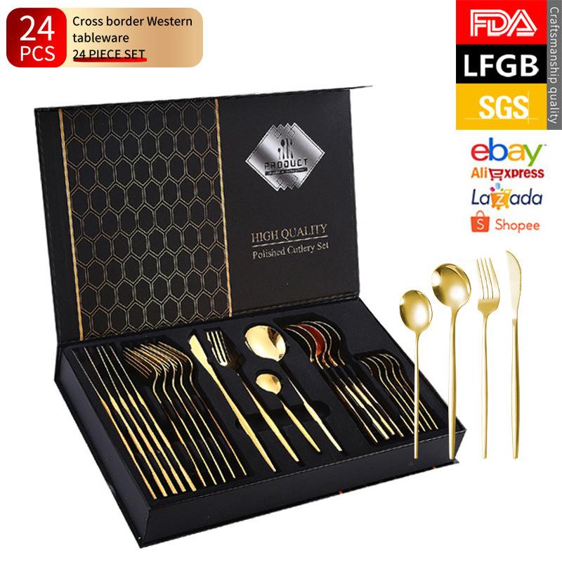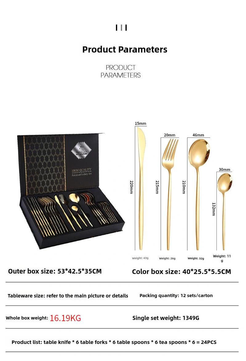 Juego de Vajilla de Acero Inoxidable Transfronterizo Portugal Juego de Vajilla de 24 piezas Cuchillo de Carne Occidental Dorado, Tenedor y Cuchara Caja de Regalo