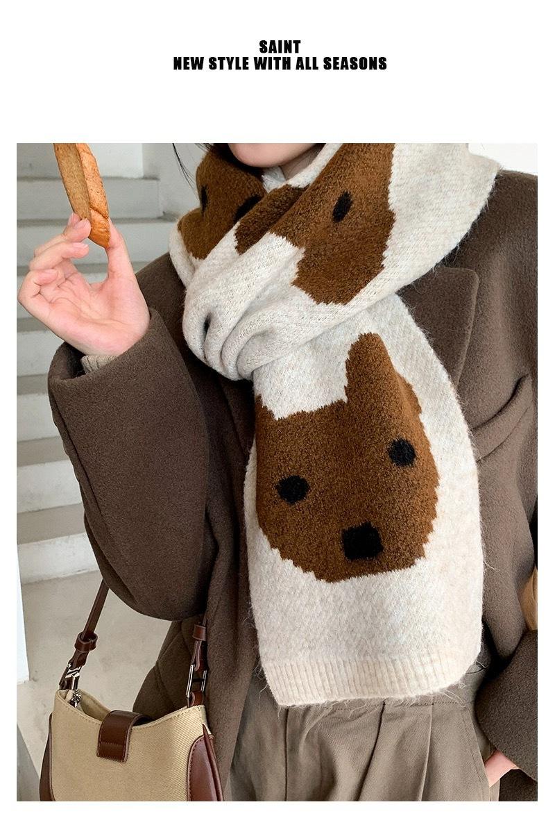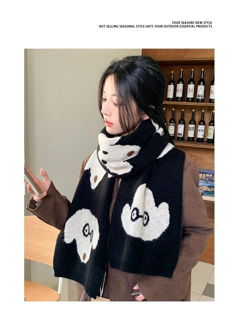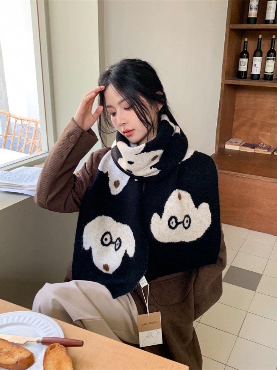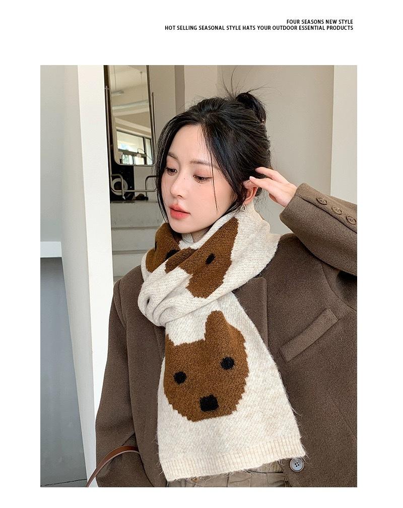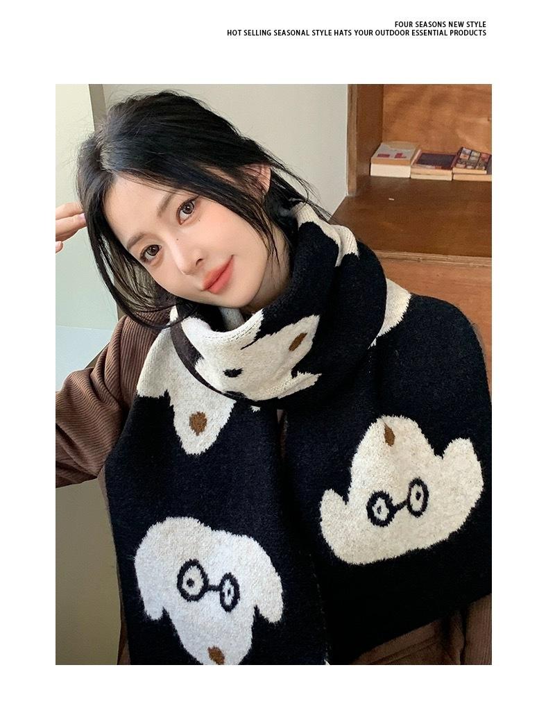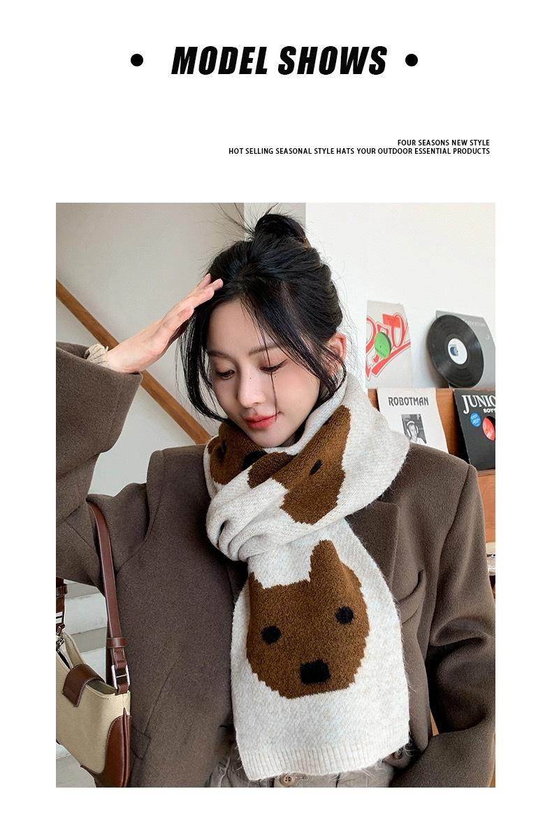 ¡Lindo y más joven! Bufanda gruesa cálida de lana mezclada con patrón de cachorro lindo para mujer, estilo coreano de invierno, combinable con todo