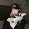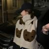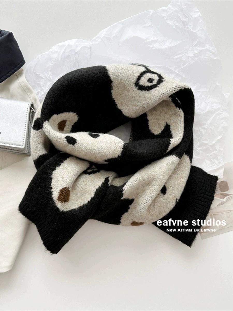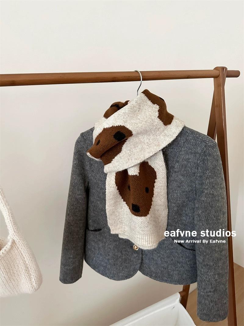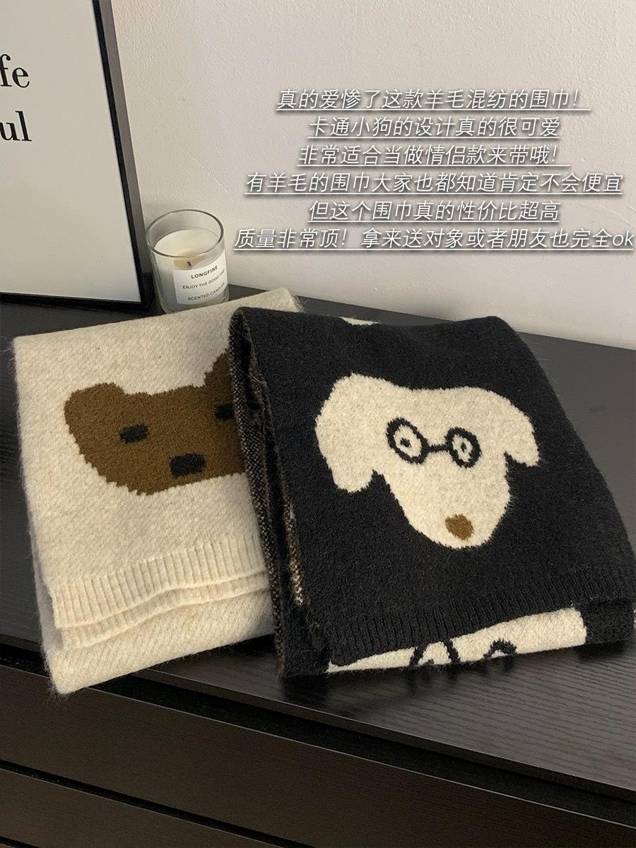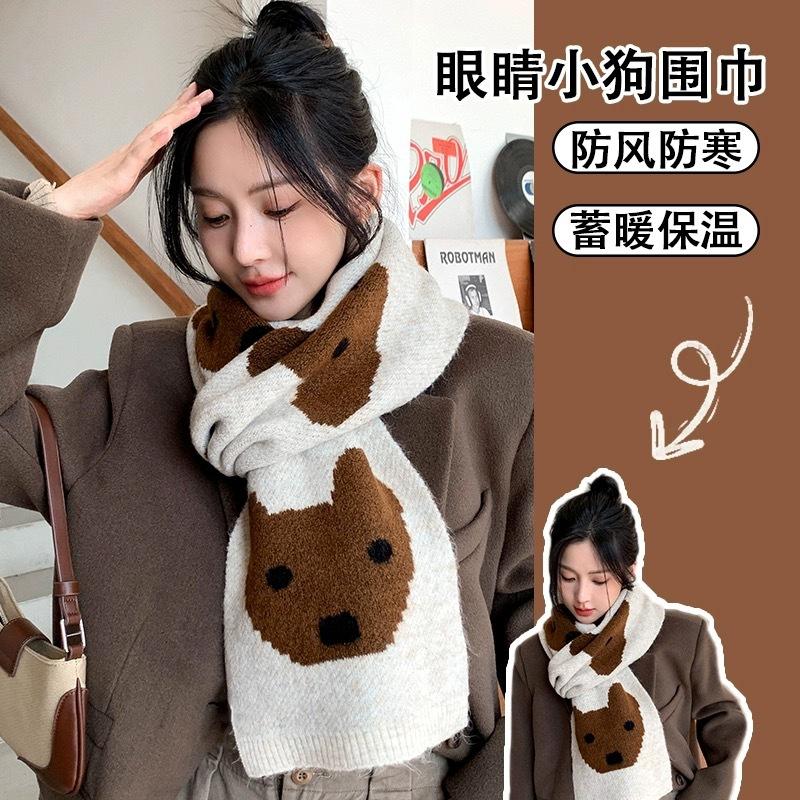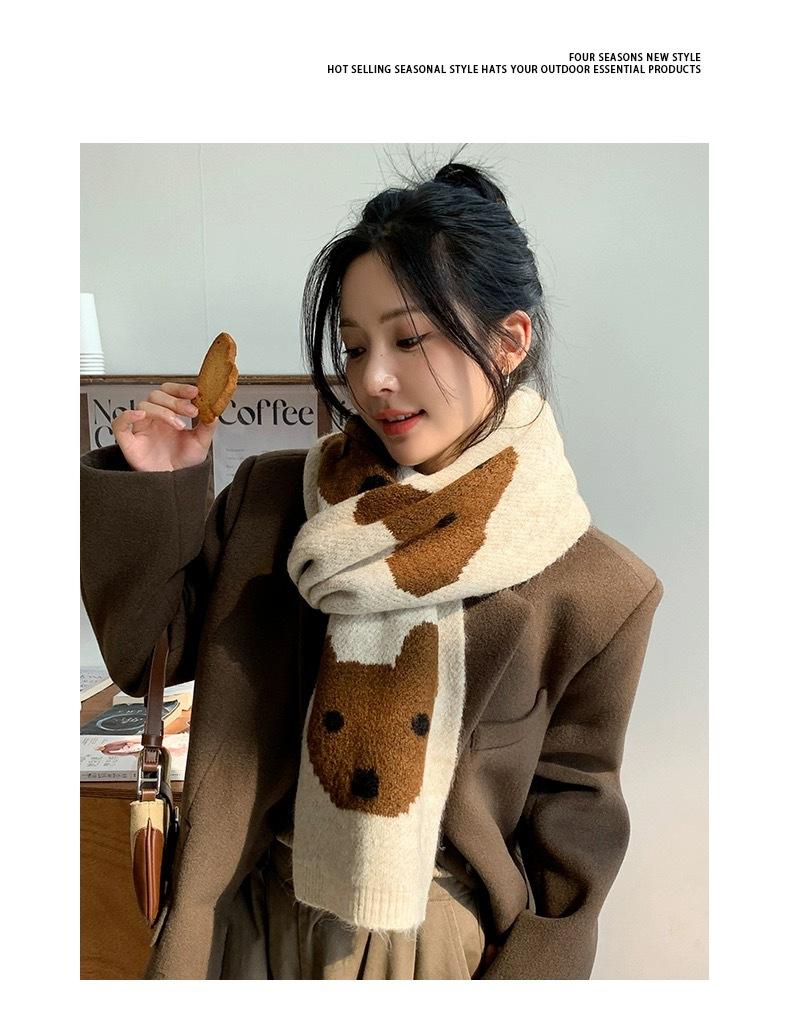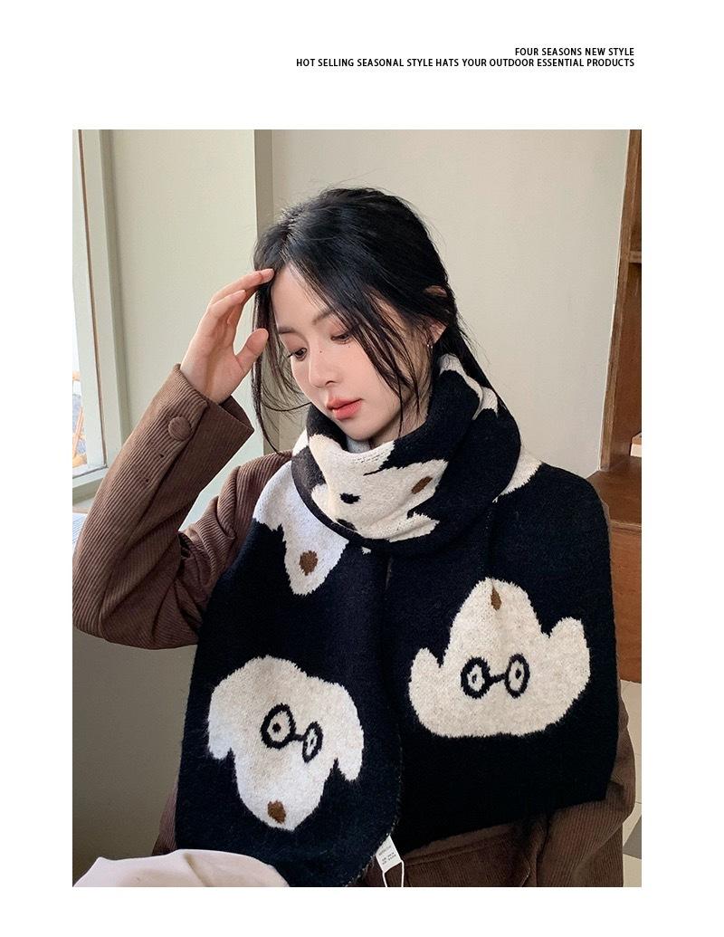¡Lindo y más joven! Bufanda gruesa cálida de lana mezclada con patrón de cachorro lindo para mujer, estilo coreano de invierno, combinable con todo