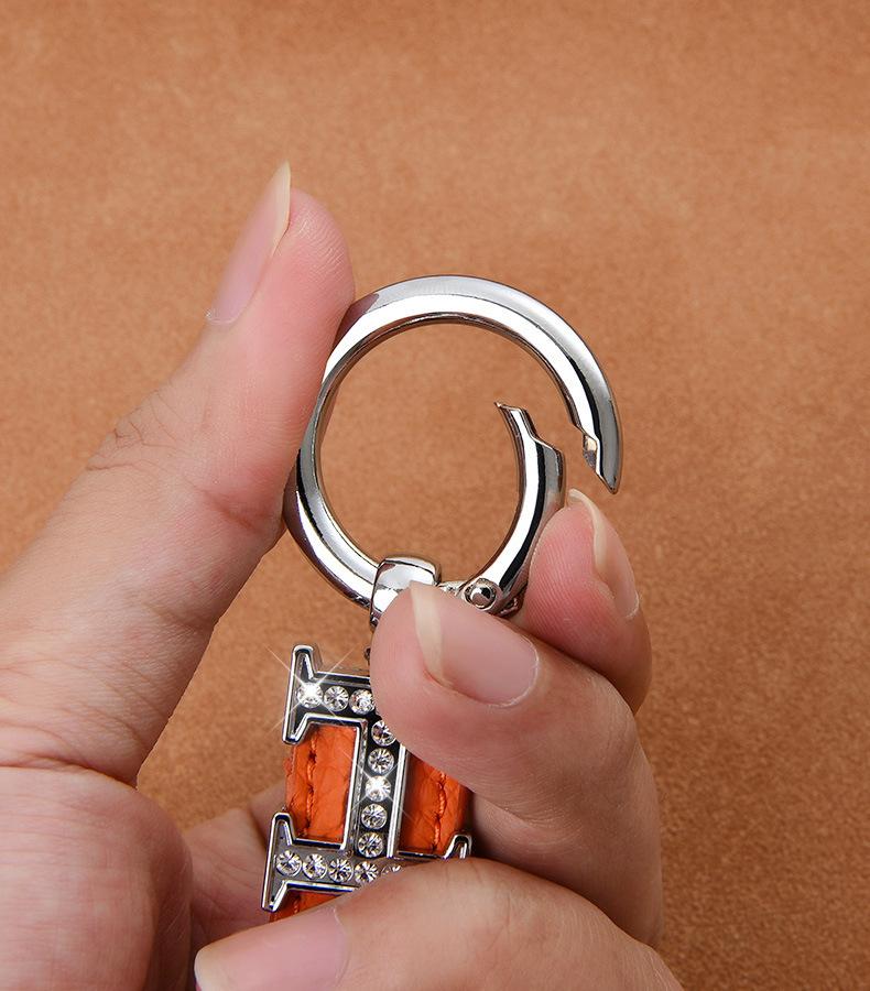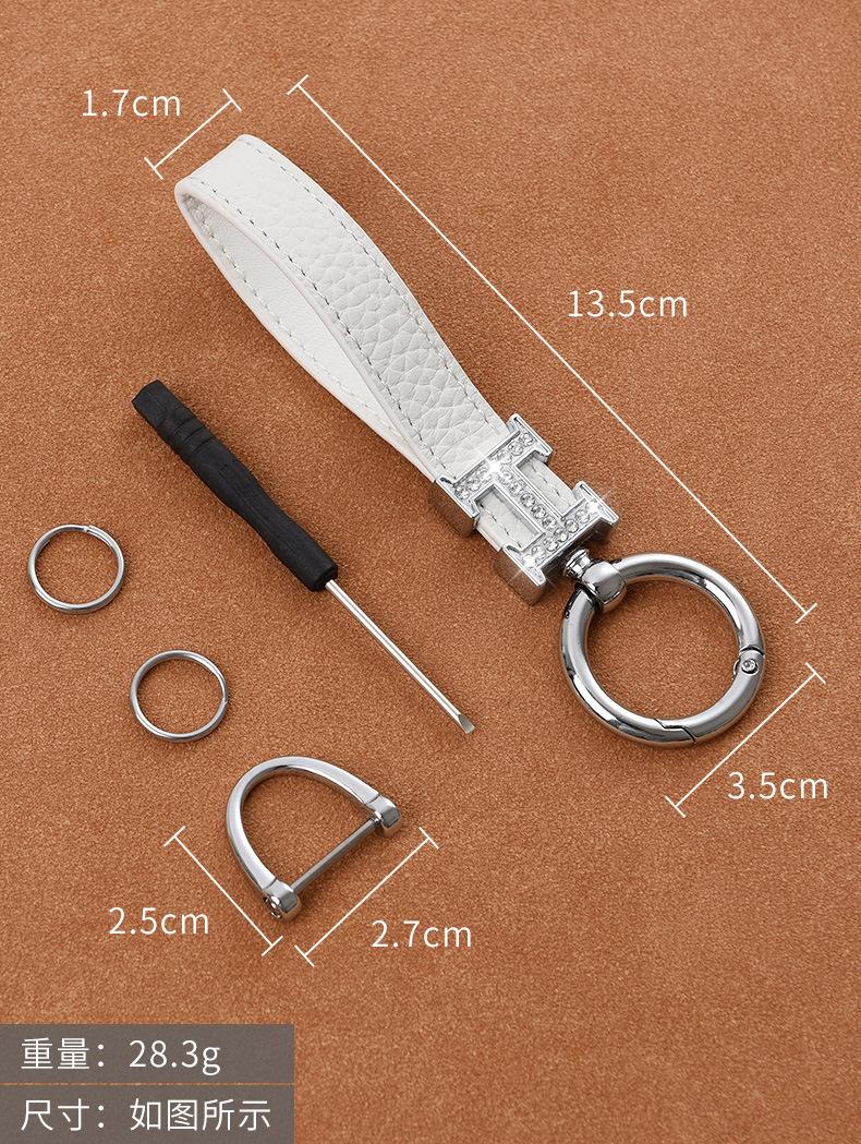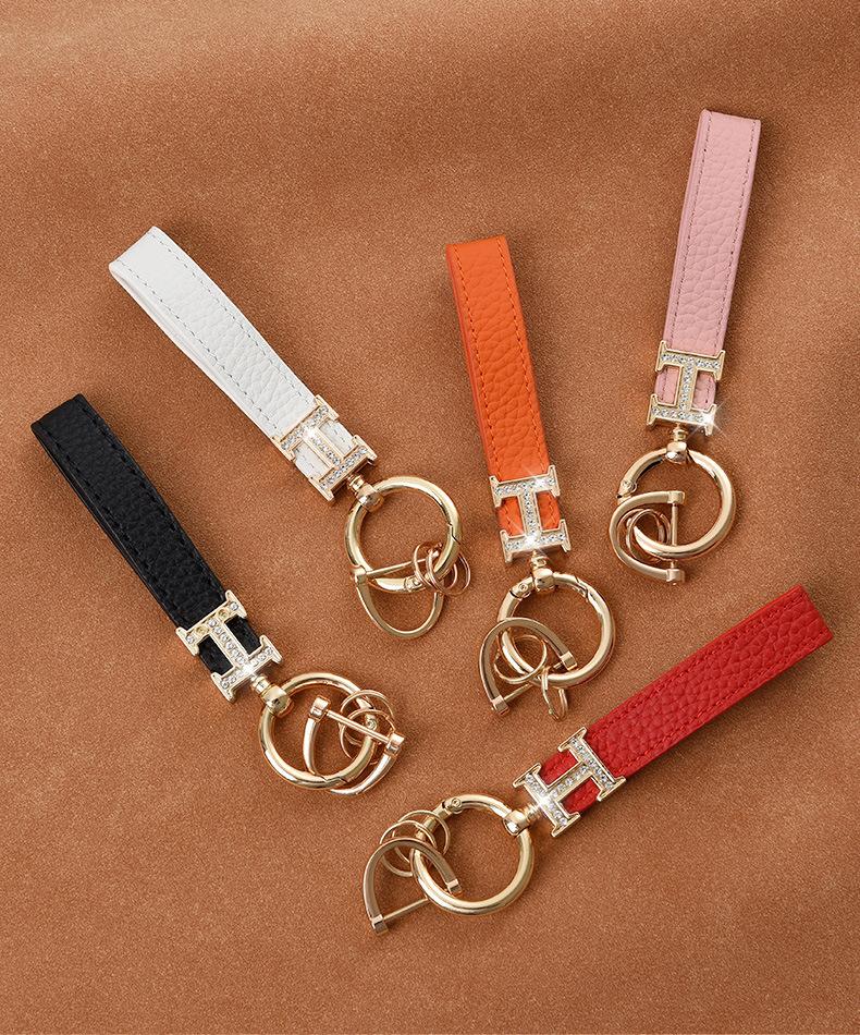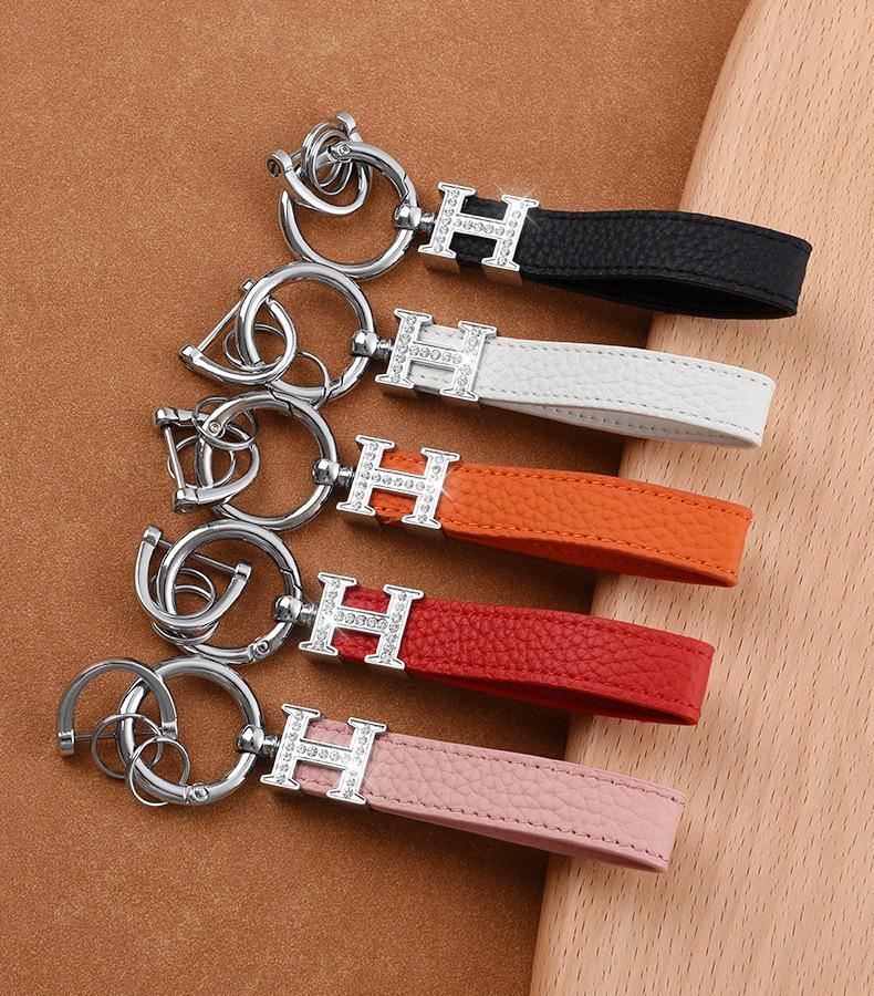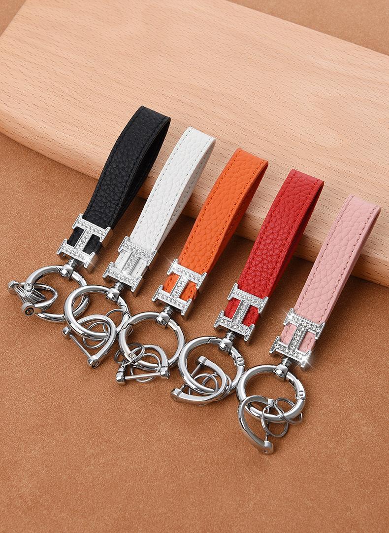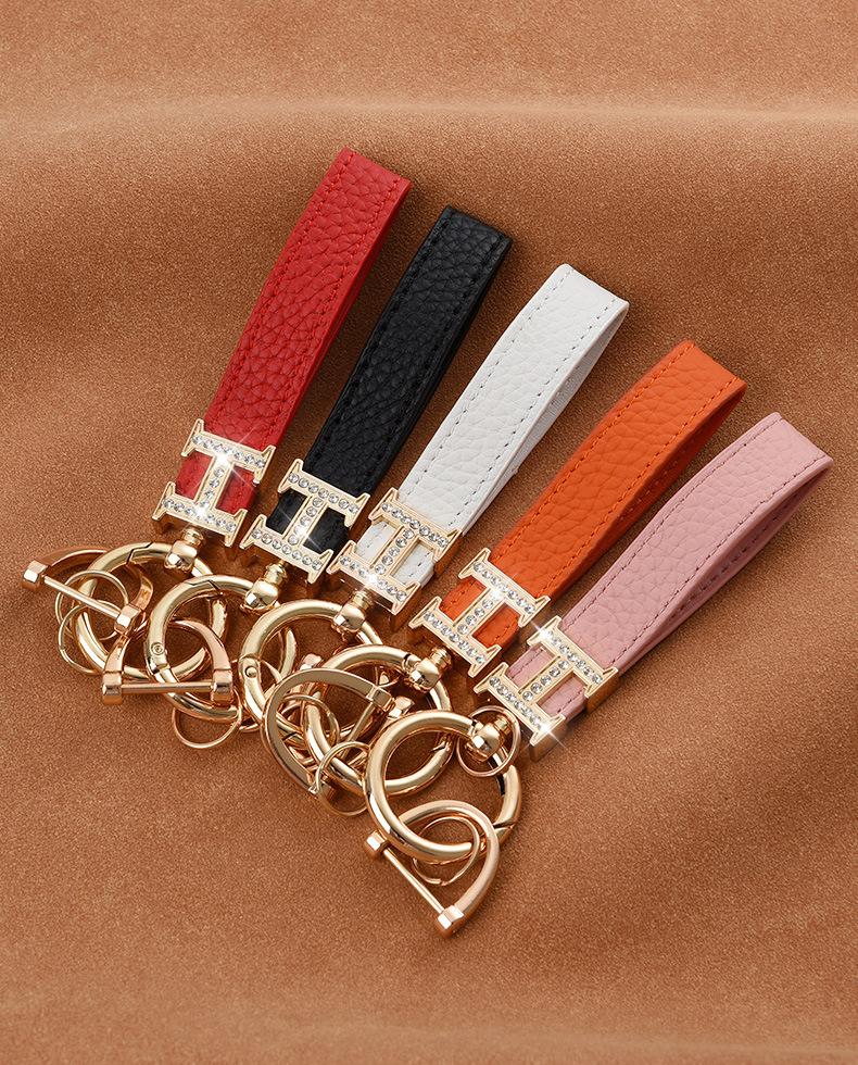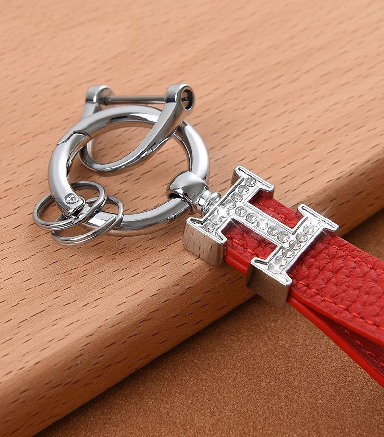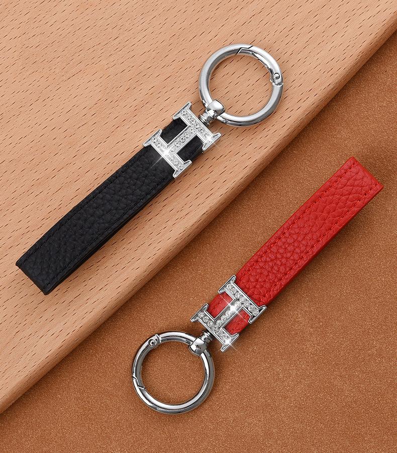 Llavero de coche para mujer, bonito colgante creativo de cuero con personalidad, llavero de diamante de alta gama con forma de H, cadena de eslabones de anillo rojo de Internet.