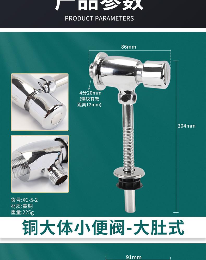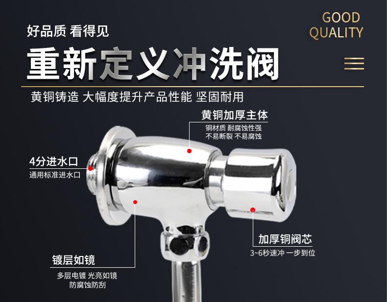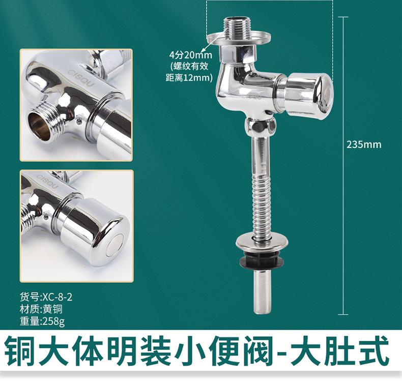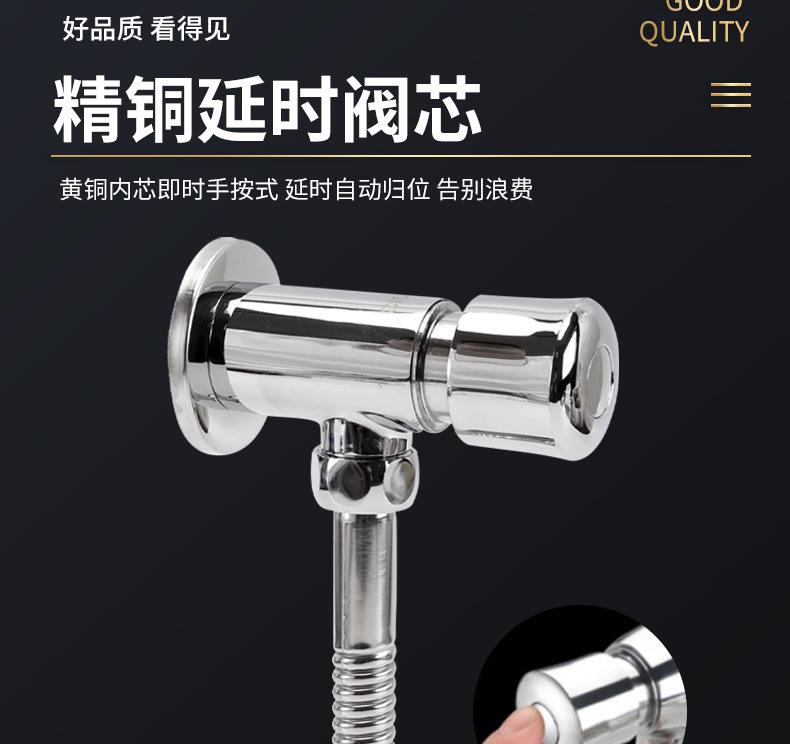 Válvula de descarga de urinario abierta y oculta con cuerpo de cobre, válvula de descarga de urinario para inodoro presionada a mano, interruptor de válvula de retardo