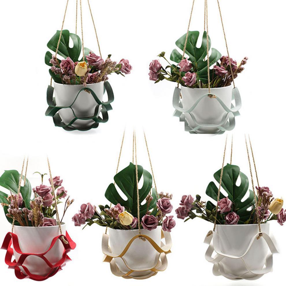 Cesta colgante de interior, maceta para plantas de jardinería, decoración de flores, bandeja, estante para balcón, planta verde, maceta de cuero, maceta colgante