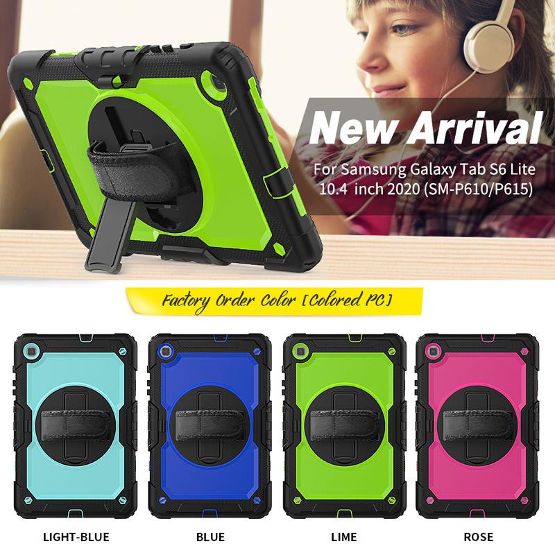 Adecuado para Lenovo M 10 306X/F, soporte giratorio de silicona para PC con color de contraste, correa de mano, carcasa trasera para tableta