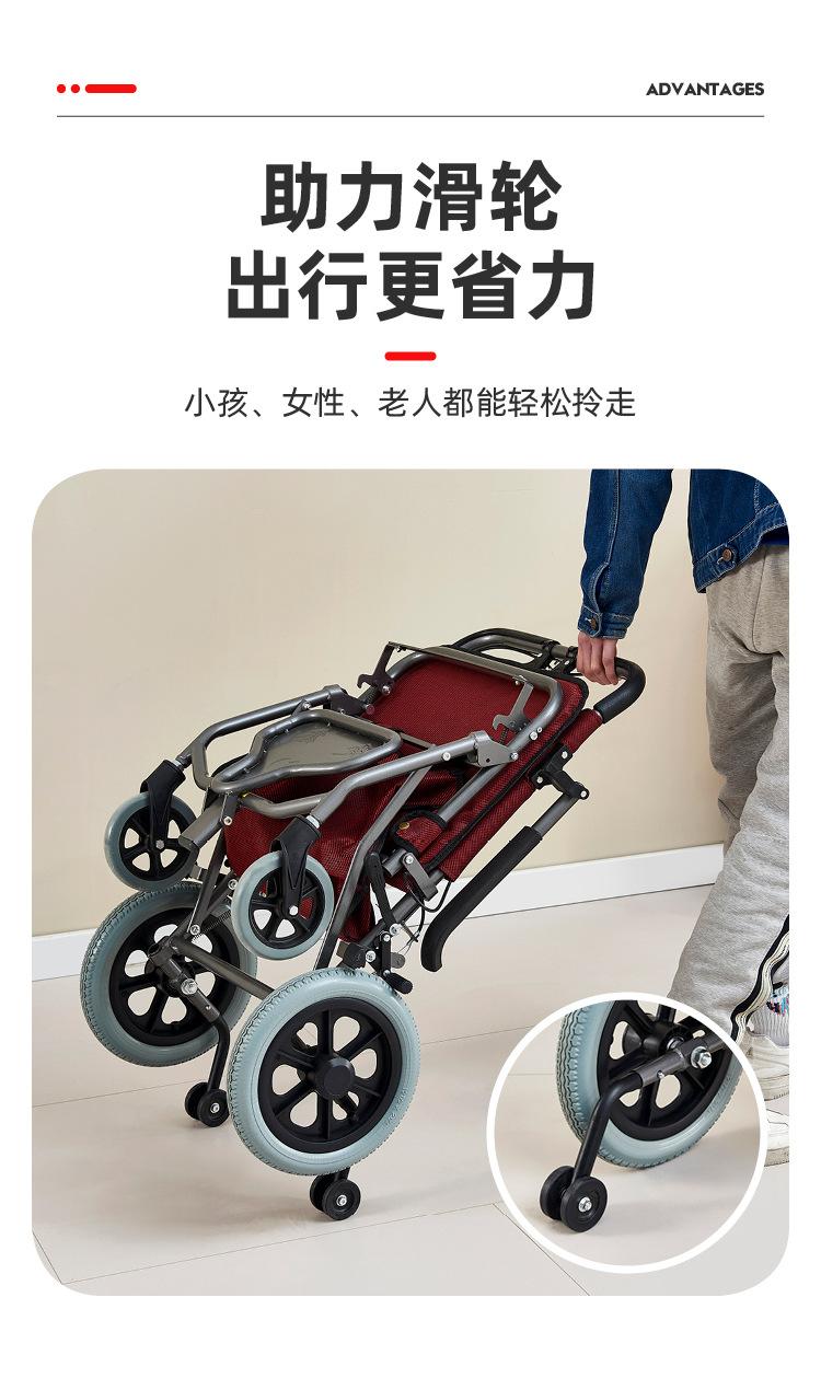 Installation-free [black] one-button folding-large wheel auxiliary small wheel