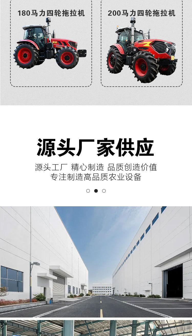 Tractor agrícola de alta potencia 1204 con tracción en las cuatro ruedas, cultivador rotativo, cabina con aire acondicionado y cultivador agrícola.