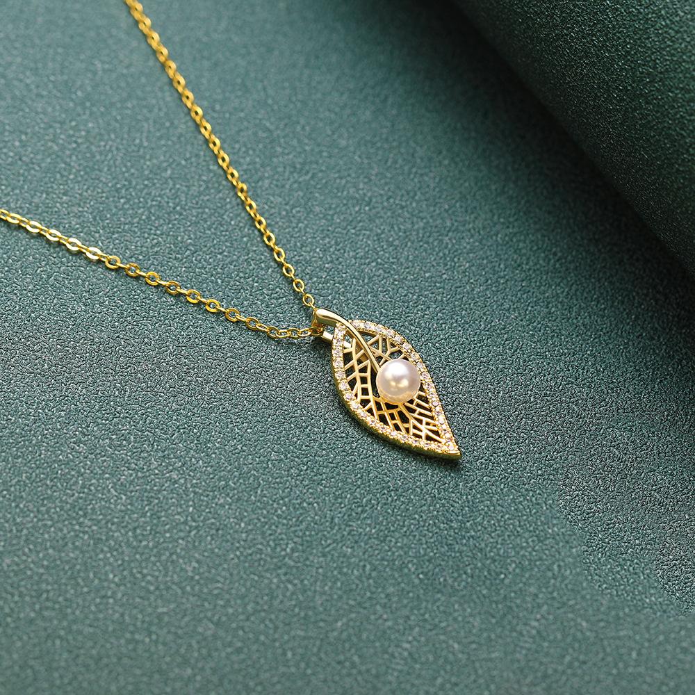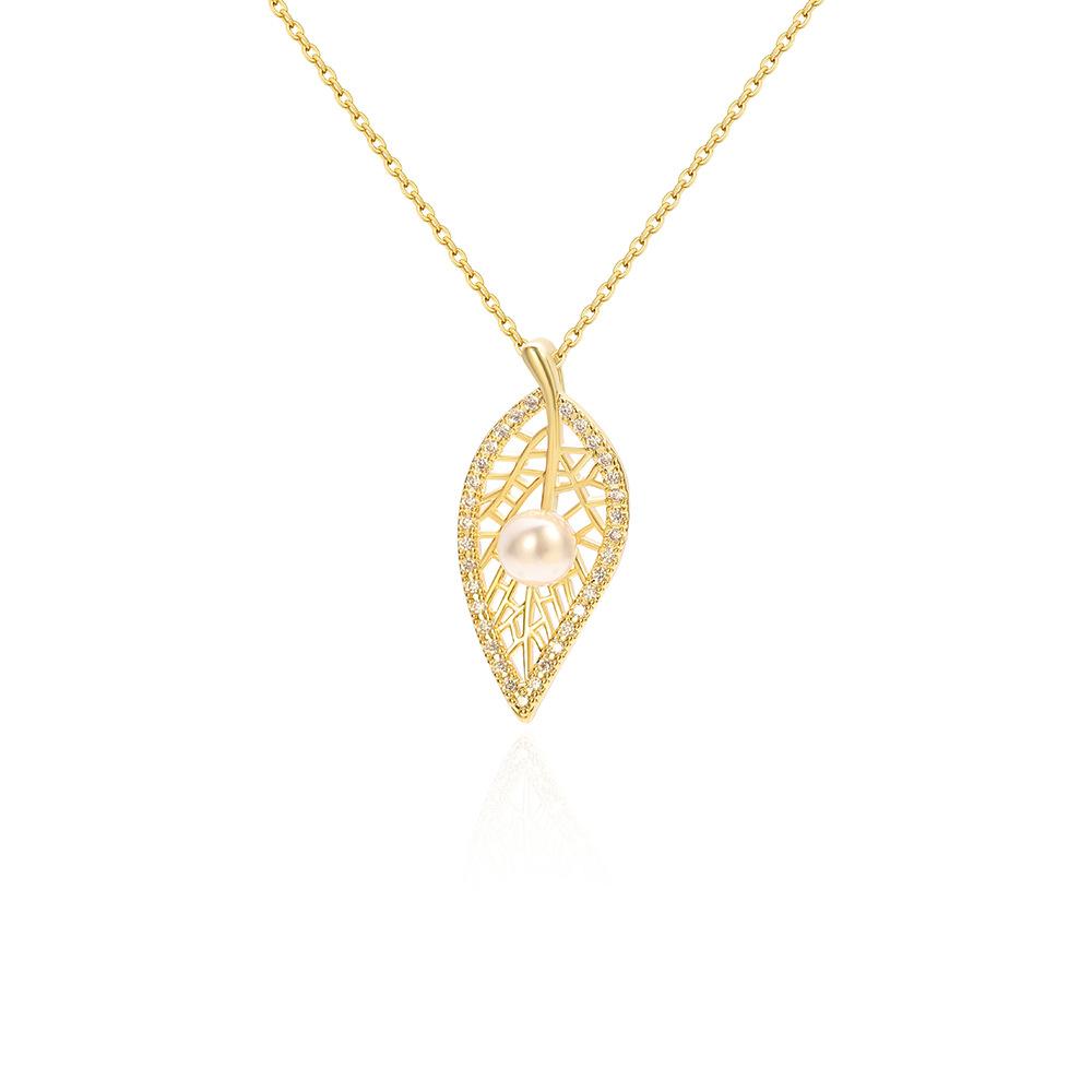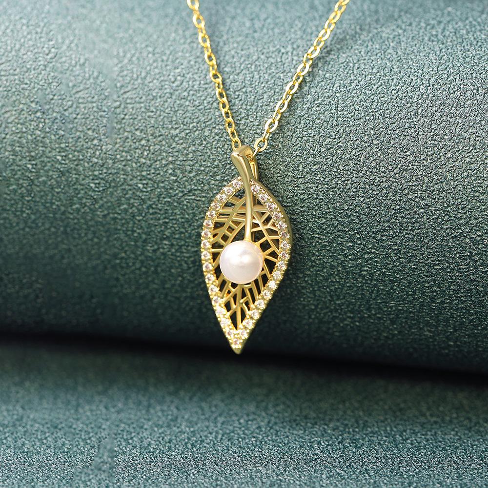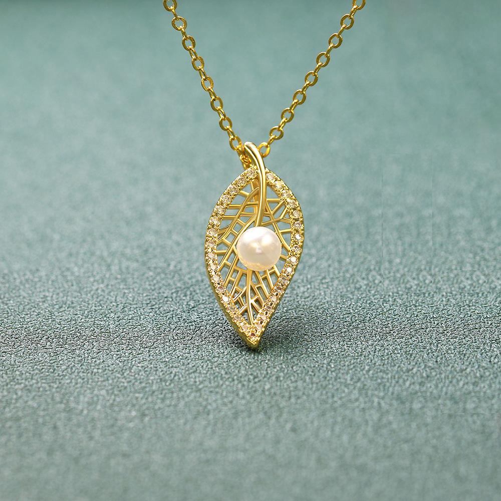 Versión coreana del nuevo collar de perlas, colgante de perla con hoja de oro real bañado en cobre, nueva boutique, regalo artesanal, venta al por mayor en vivo