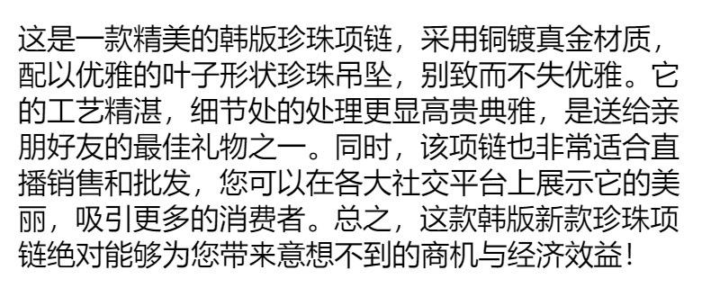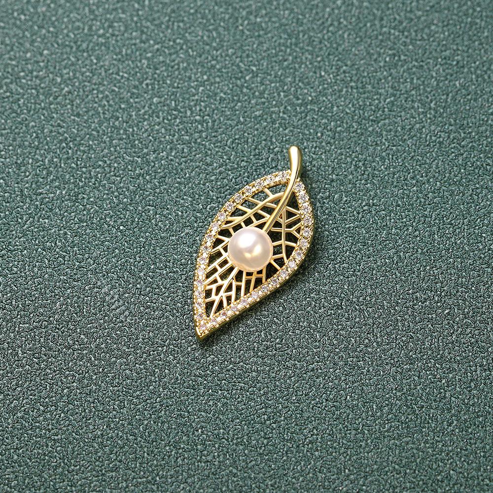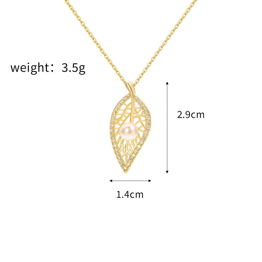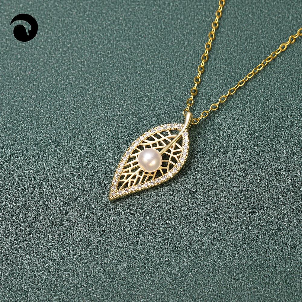 Versión coreana del nuevo collar de perlas, colgante de perla con hoja de oro real bañado en cobre, nueva boutique, regalo artesanal, venta al por mayor en vivo