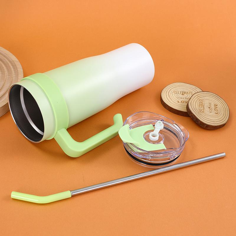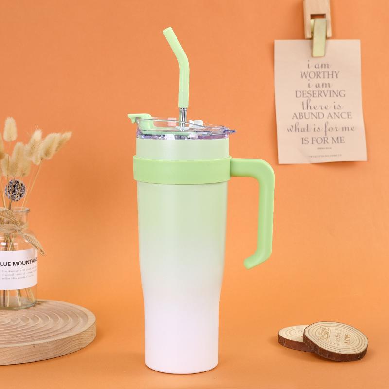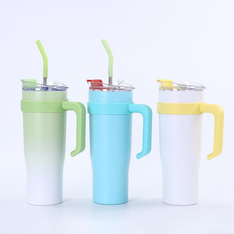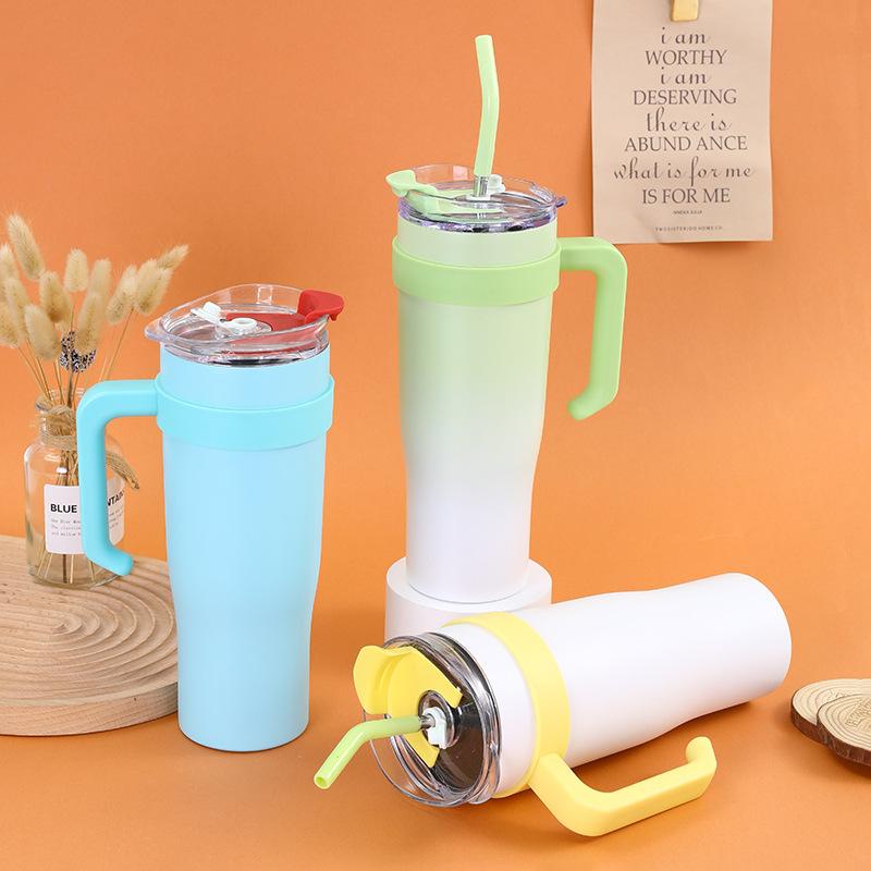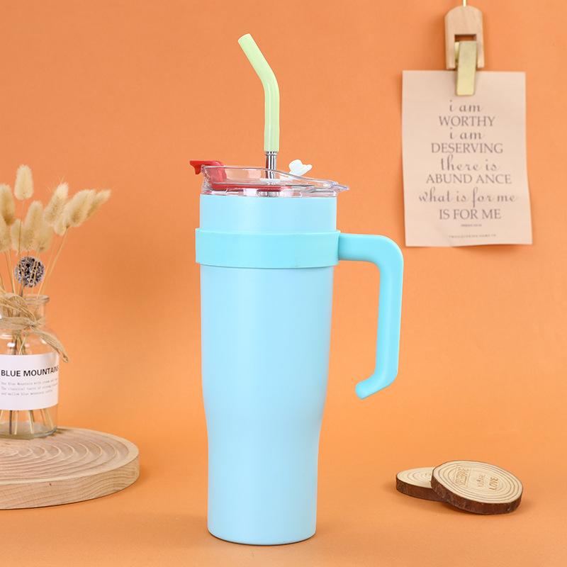 Vaso para coche personalizado de segunda generación de 40 oz, de acero inoxidable 304, con aislamiento térmico, vaso de hielo de gran capacidad con pajita y asa.
