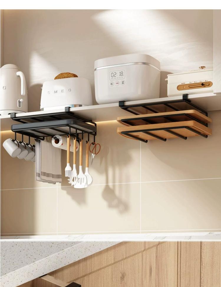 Estante de Cocina Multifuncional para Gabinete, Estante con Capas sin Perforaciones, Soporte para Tapas de Olla y Tablas de Cortar, Almacenamiento para Espátulas, Producto Nuevo