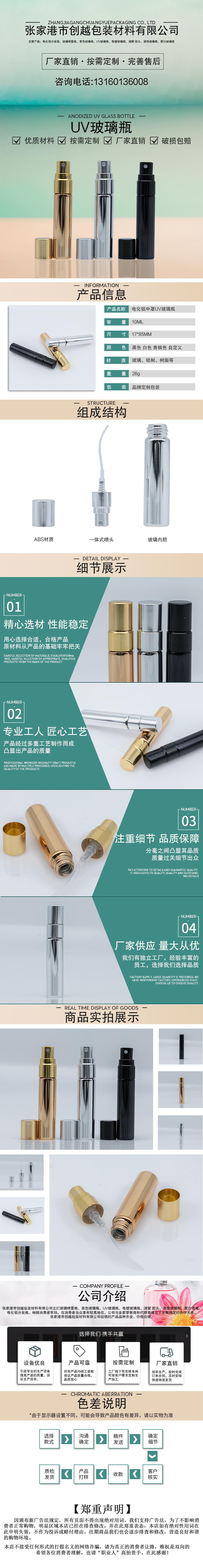 Botella de tubo de perfume portátil, botella de vidrio transparente, botella de pulverización de aluminio electroquímico, juego de botellas de tóner