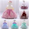 Vestido de niña estilo palacio de nuevo estilo, vestido de princesa con mangas abullonadas y lazo para bebé europeo y americano, disfraz de actuación para bebé de un año