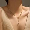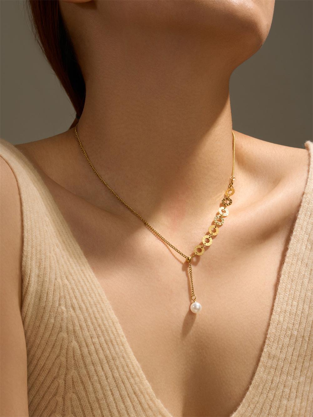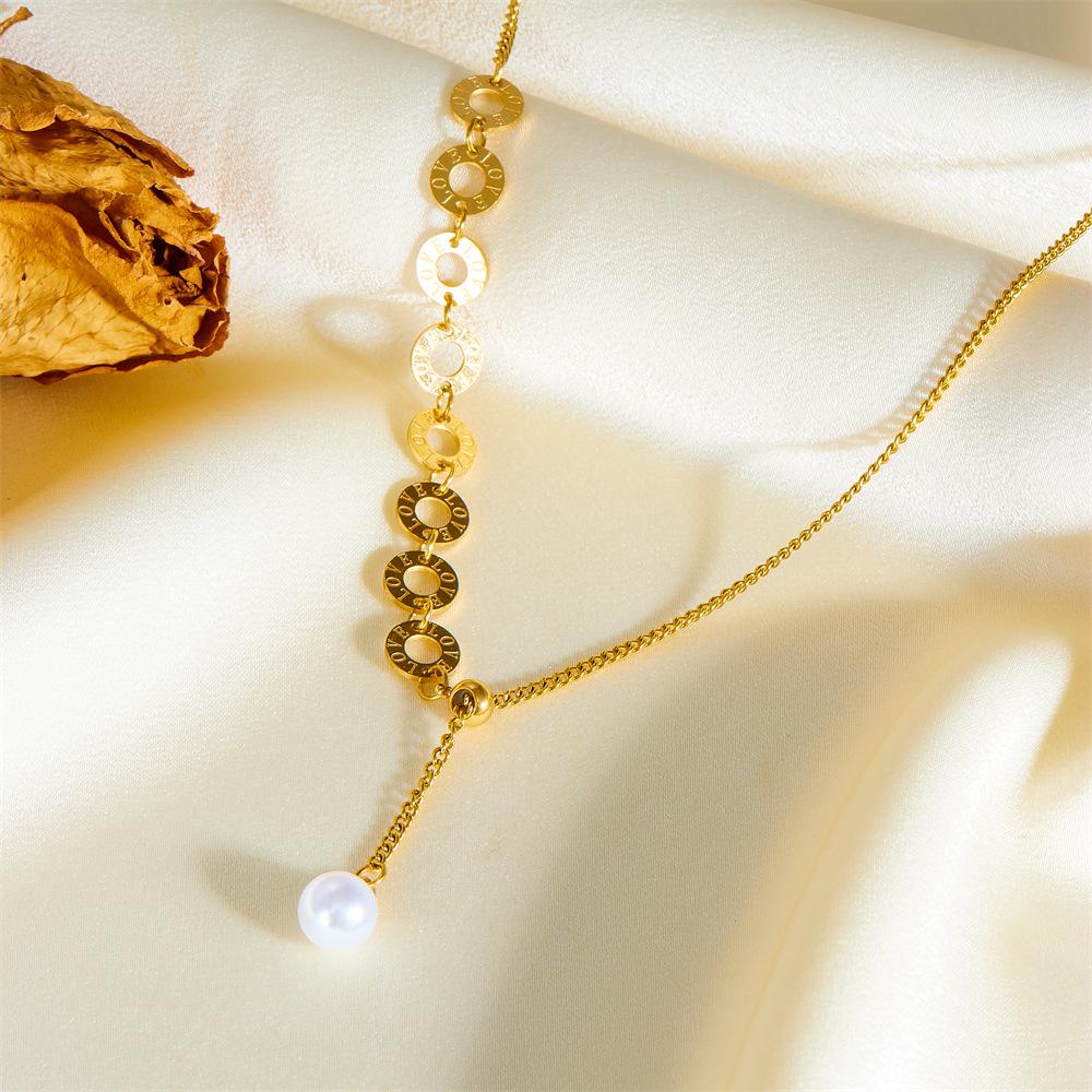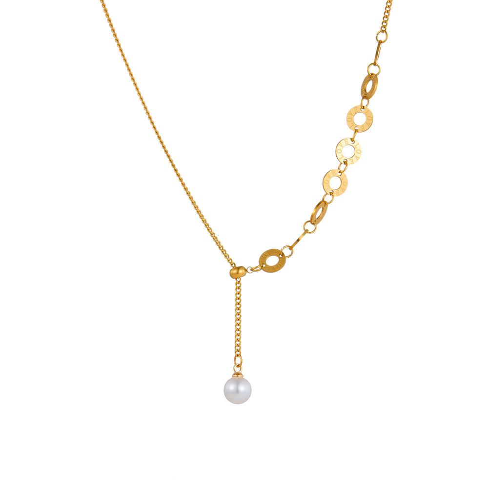 Moda Estilo Europeo y Americano Lujo Ligero Simple Personalizado Perla Número Romano Collar de Tirar para Mujer Joyería de Acero Titanio Sin Color