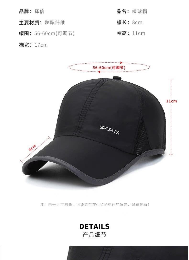Gorra de béisbol deportiva de malla para exteriores, de secado rápido, ligera y transpirable, para primavera y verano, para hombres y mujeres