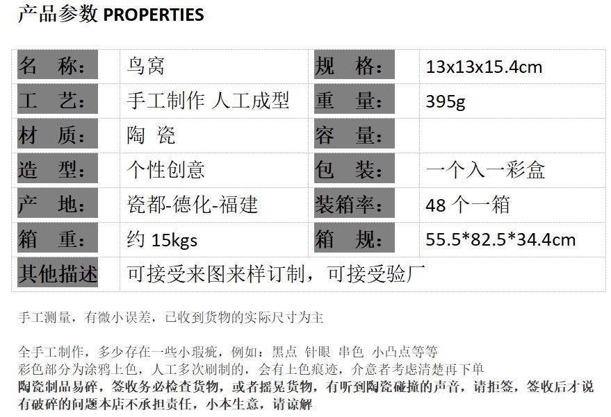 Casa de Pájaros de Cerámica Decoración de Jardín de Patio Adornos Colgantes de Pared Nido de Pájaro al Aire Libre Paisajismo Personalización