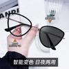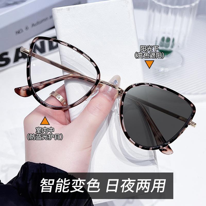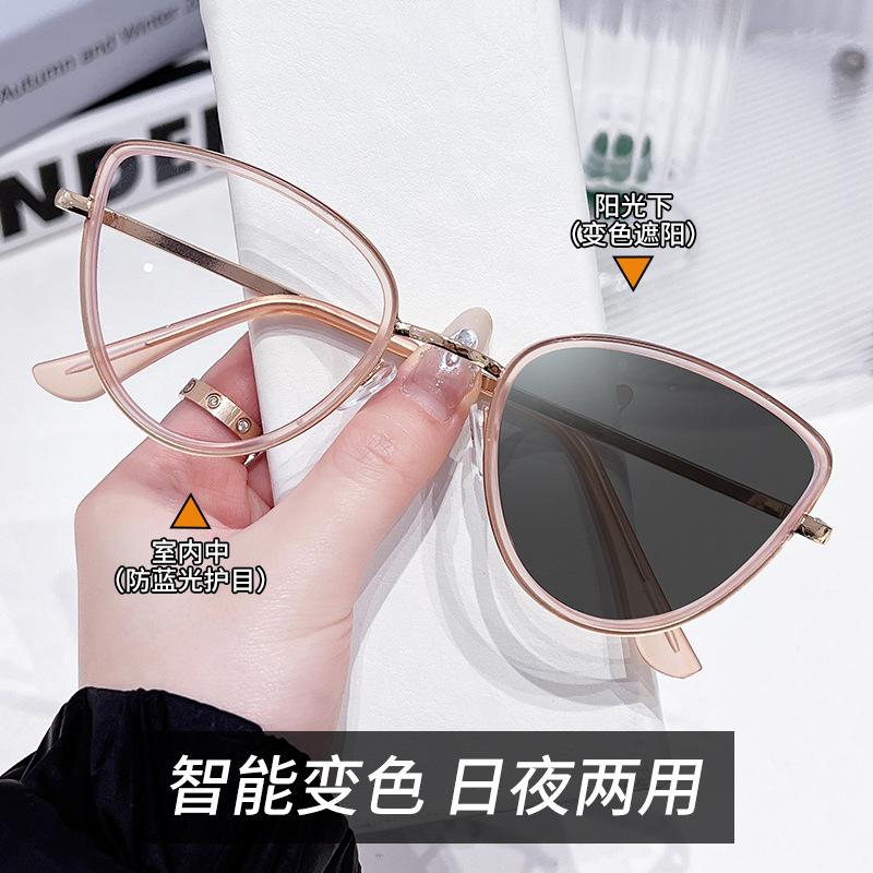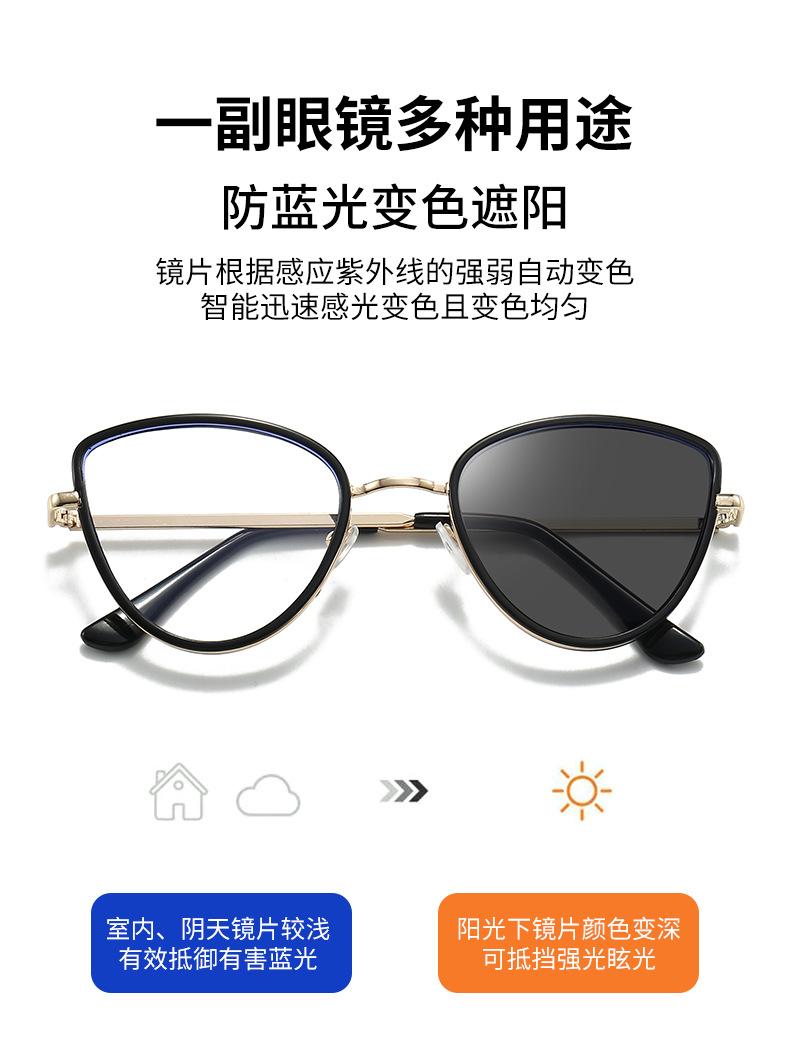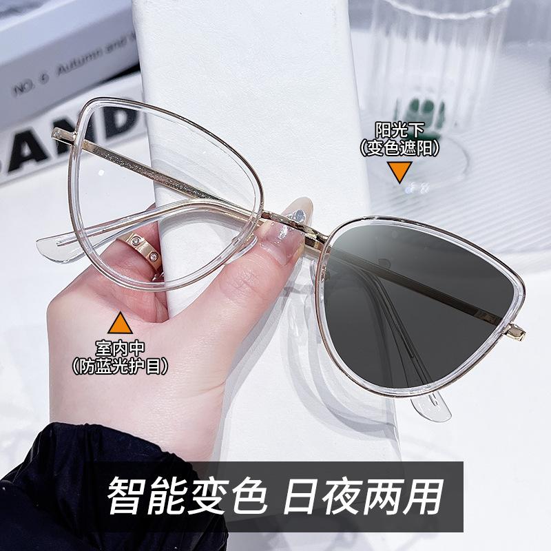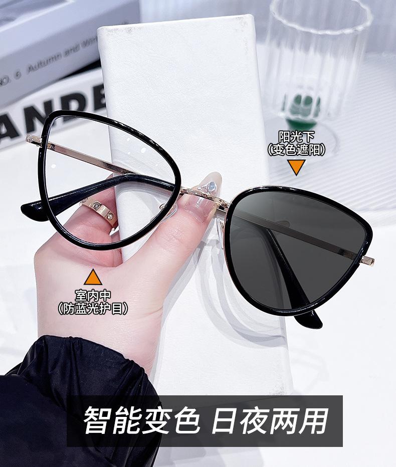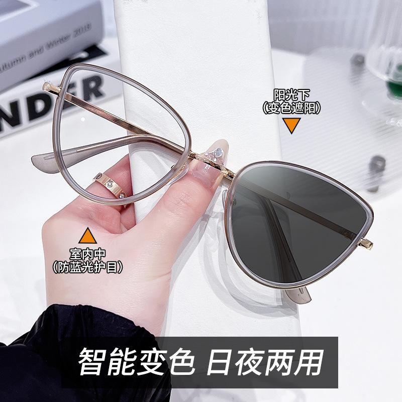 Montura de gafas triangulares de metal con diseño de ojo de gato y espejo plano, antiluz azul, de moda transfronteriza, fotosensibles y con decoloración.