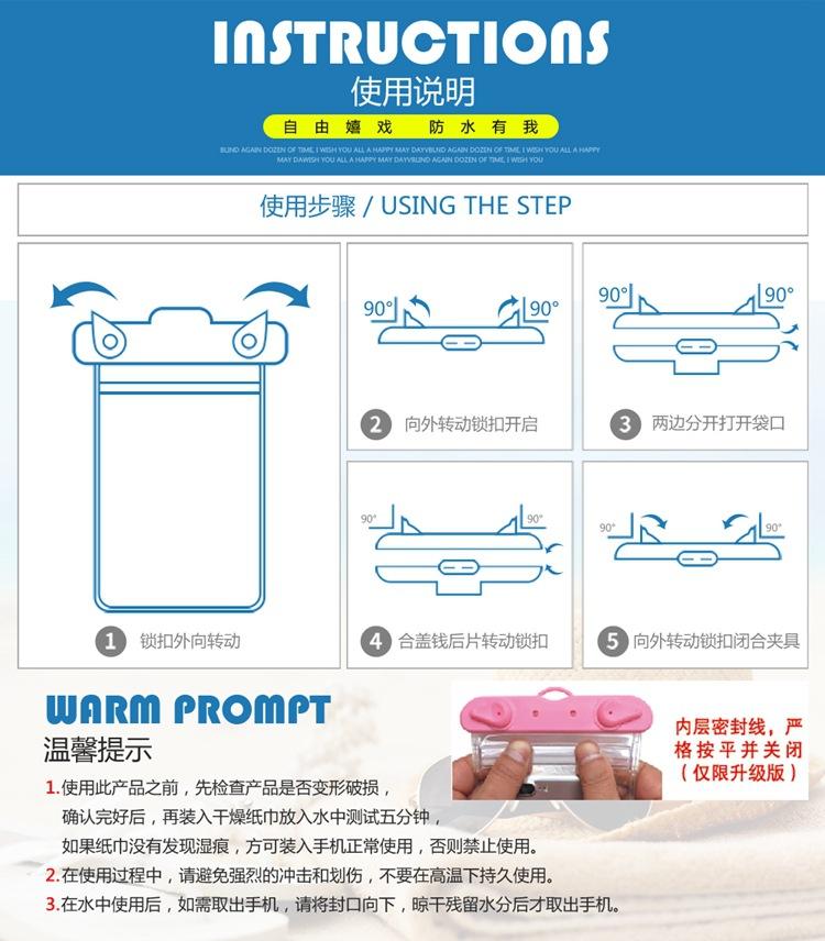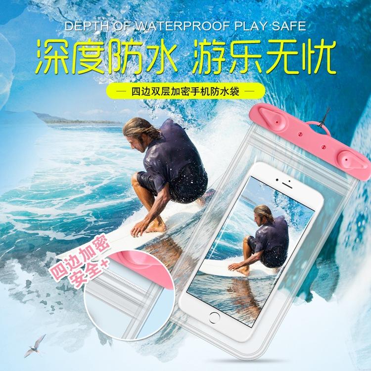 Bolsa Impermeable para Teléfono Móvil de Doble Capa de Cuatro Lados al por Mayor Natación y Buceo Exterior Impermeable Cubierta de Bolsa para Teléfono Móvil Repelente al Agua