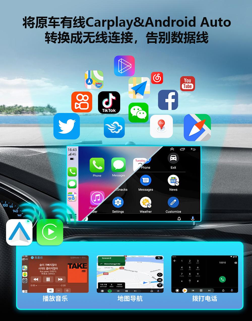 Wireless Carplay with Android Auto 2-in-1 (carbon fiber pattern model))