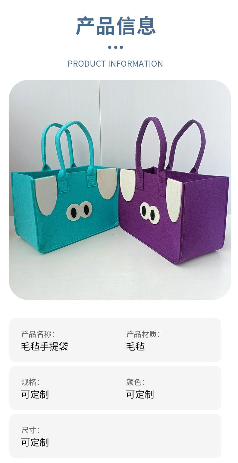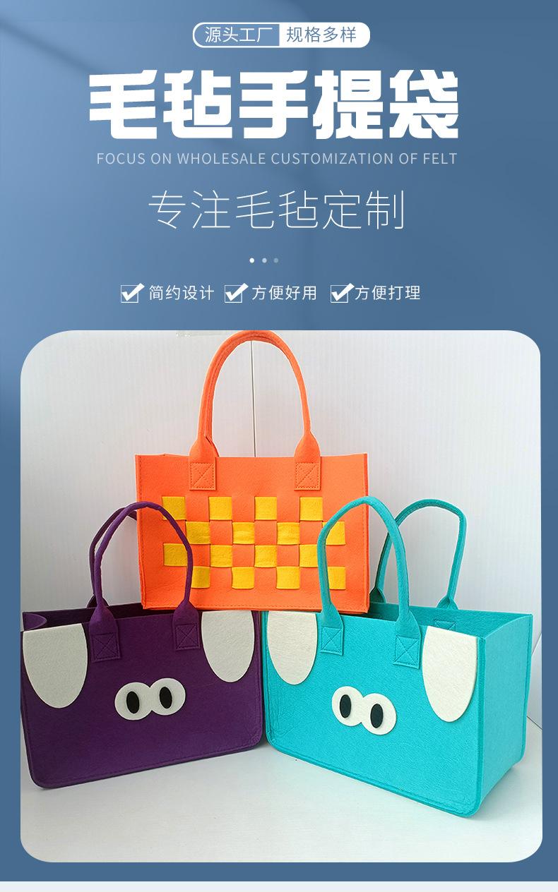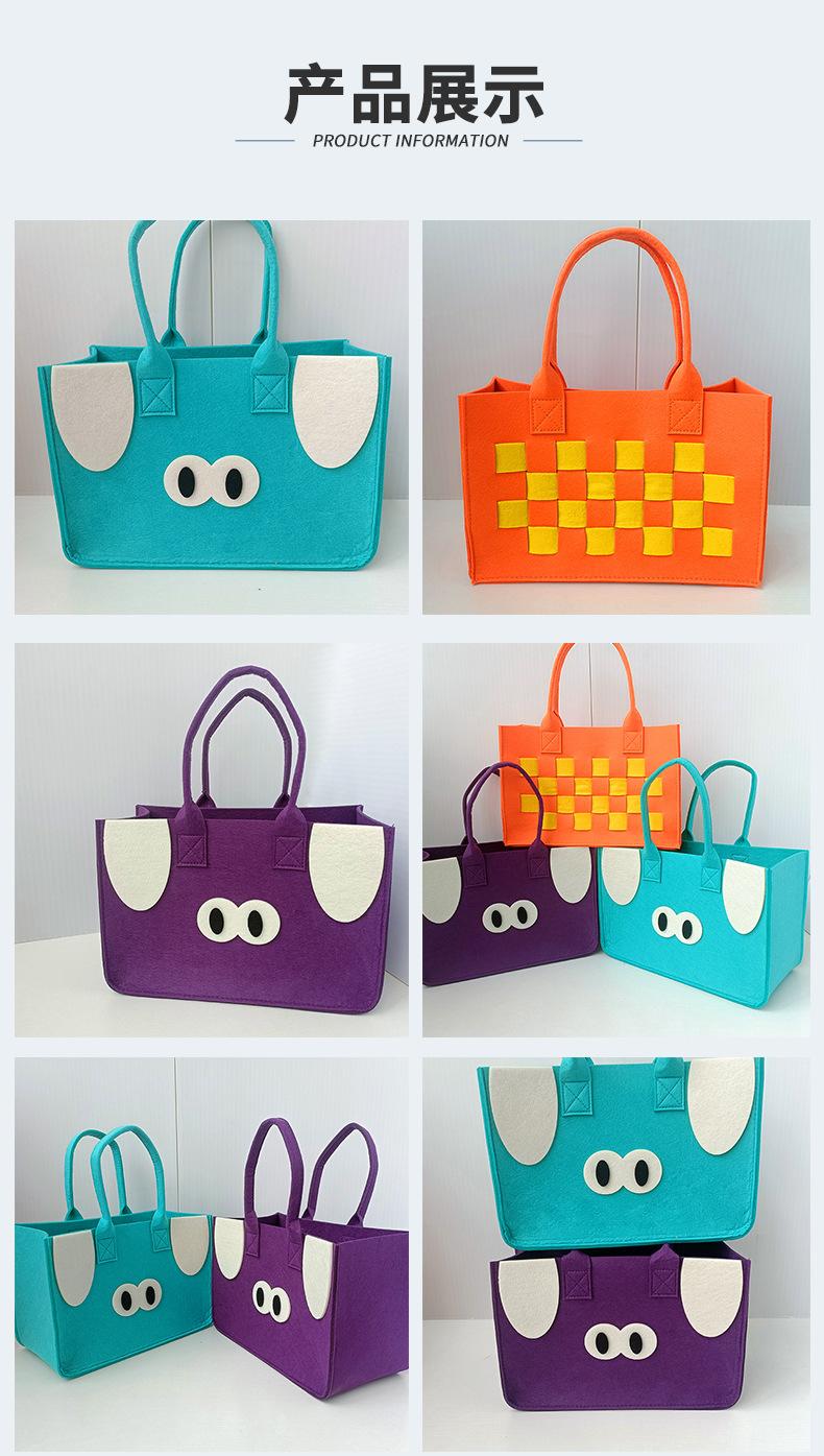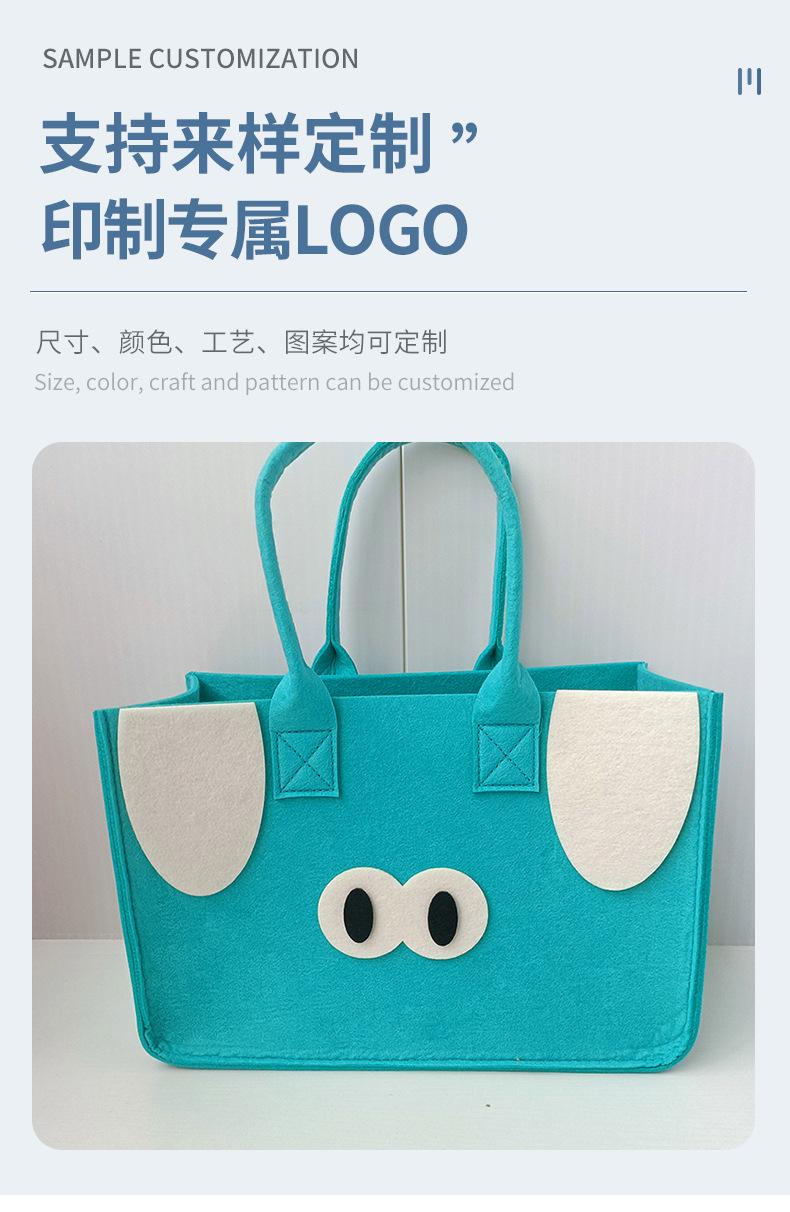 Bolso de mano de fieltro de dibujos animados al por mayor, bolsa de compras de regalo publicitaria de gran capacidad, bolsa de regalo de fieltro de gran capacidad, bolsa de regalo con logotipo impreso