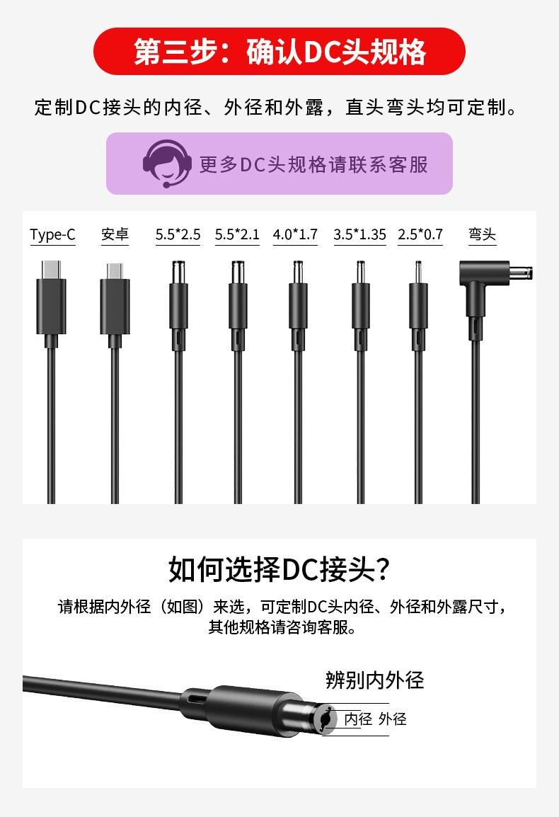12V1A DC5.5 * 2.5*10MM, 12V1A DC5.5 * 2.1*10MM, 12V1A DC3.5 * 1.35*10MM, 12V1A American TYPE-C, 12V1A US Gauge Other