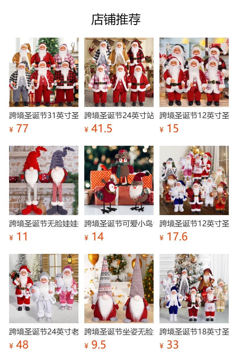Papá Noel transfronterizo de 12 pulgadas, lindo y creativo adorno navideño, adornos de Papá Noel realistas. ¥12.00 Compre ya | Árbol de Navidad transfronterizo abrazando al hombre de jengibre, decoración del pilar del árbol de Navidad, decoración única de la cortina de la cubierta de la botella de vino del hombre de jengibre ¥12.00 Compre ya | Nueva decoración navideña transfronteriza, muñeca sin rostro a rayas, muñeca de pie, muñeca telescópica nórdica de Papá Noel. ¥17.20 Compre ya | ||