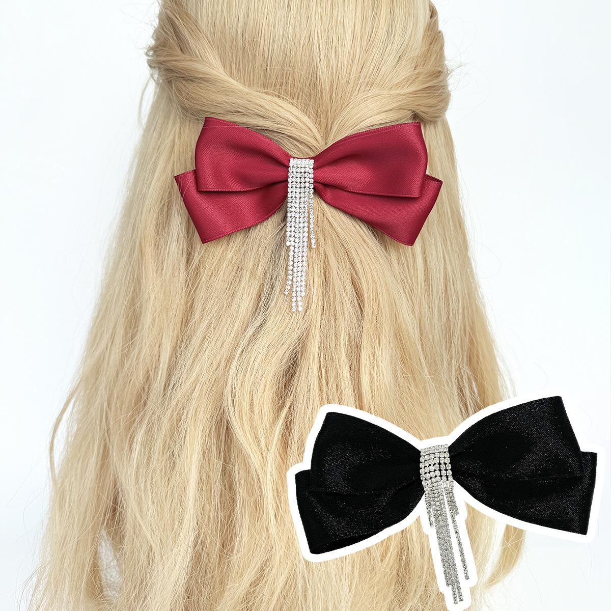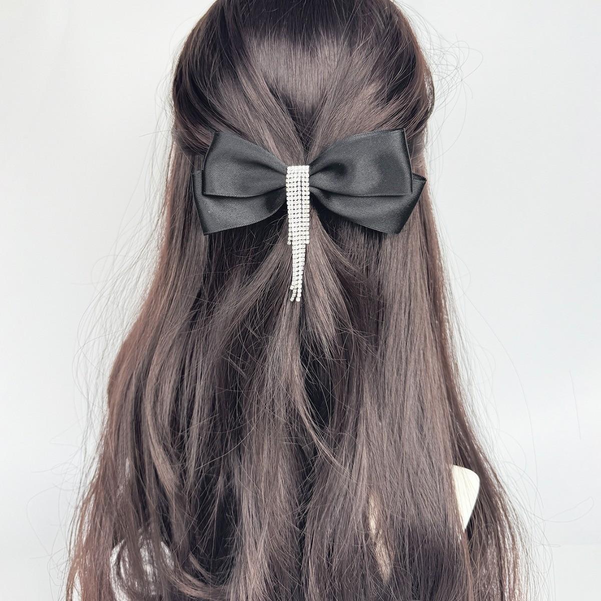Horquilla con lazo y borlas de diamantes de imitación para mujer, estilo coreano, elegante, combina con todo, con clip, accesorios para el cabello de alta gama.
