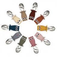 Lindo tenedor y cuchara de acero inoxidable con forma de búho n.° 316, cuchara de silicona con mango corto para bebés, cuchara para niños, cuchara de entrenamiento para bebés