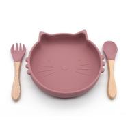 Bonita bandeja de comida para gatos, bandeja de comida para bebés con tenedor y cuchara, tazón con ventosa, bandeja de comida para niños, vajilla anticaídas y quemaduras, venta directa de fábrica
