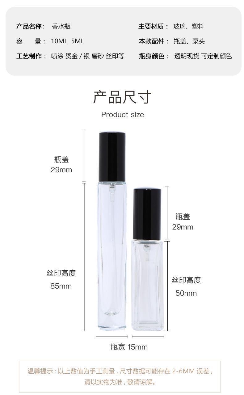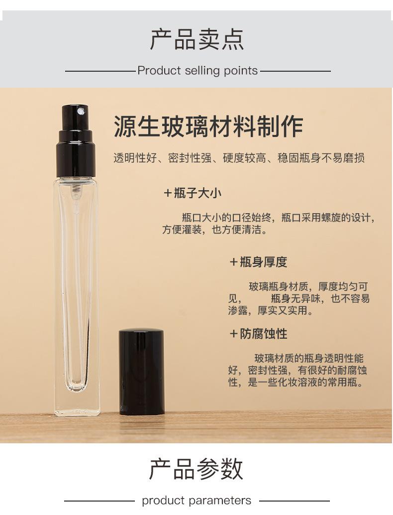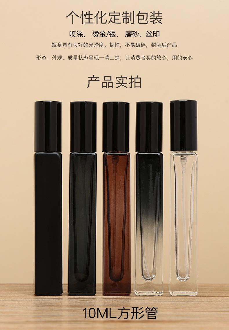 Frascos de perfume cosméticos cuadrados de 10 ml, portátiles, con pulverizador, de vidrio transparente, con prensa fina, venta al por mayor