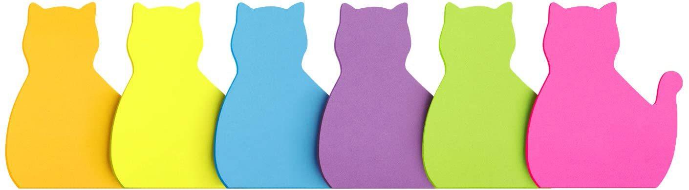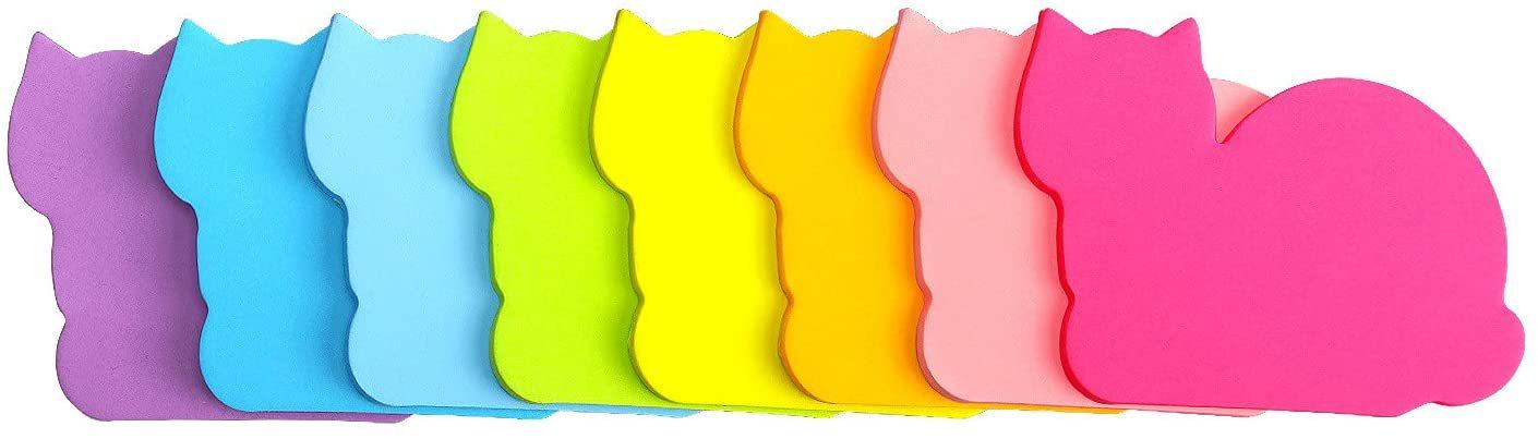 Nuevas Notas Adhesivas de Dibujos Animados con Forma de Gato Lindo Transfronterizas, Bloc de Notas Fluorescentes Coloridas con Forma de Animal, Se Pueden Personalizar con Logo