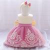 Vestido de bautizo para bebé de un año, transfronterizo, europeo y americano, vestido de novia de satén con mangas voladoras, vestido de princesa, vestido de noche para bebé